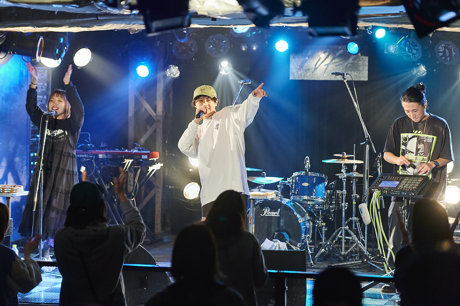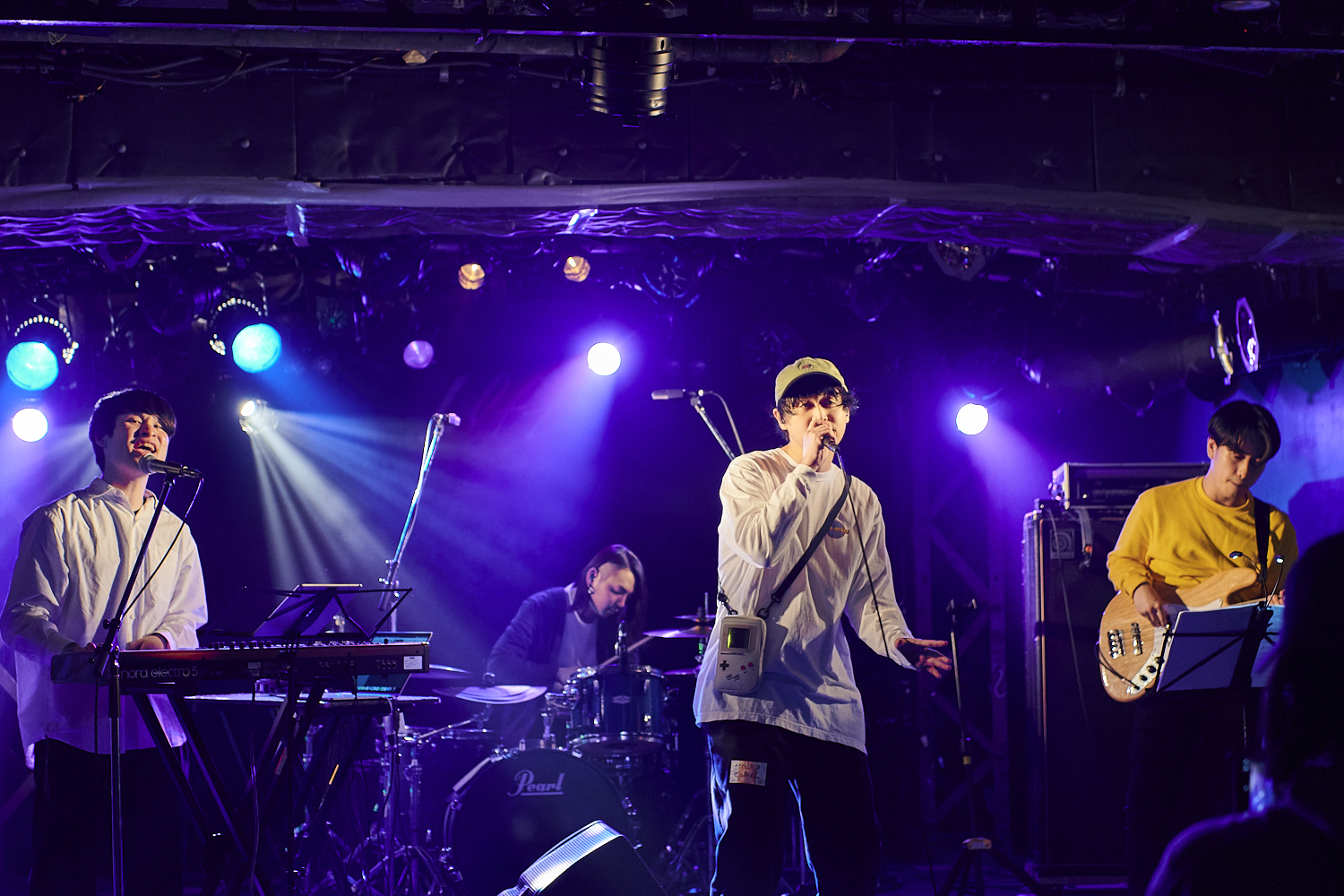 この日のゲストとして招かれたのは、ぜったくん。米澤がぜったくんのサポートキーボードを務めたり、一緒に楽曲を制作したりするだけでなく、プライベートでも親しい間柄なのもあり、お互いのことを“盟友”と呼び合う彼ら。ぜったくんは「ここで2マンをやれている現状がすごく嬉しいです。(コロナ禍で)こんな状況ではあるけど、今日ここに来たことだけでしか得られない楽しさ、間違いないものを、みんなに持って帰ってもらいたいです。僕も間違いないものを提供しますので、よろしくお願いします!」と、気合十分。女性コーラスのキミカとMPCプレイヤーのKO-neyとの3人編成で、親しみやすさはありながらも、ローの迫力がとにかく強烈なポップナンバーで、終始オーディエンスを盛り上げ続けていた。