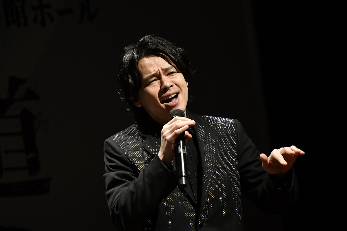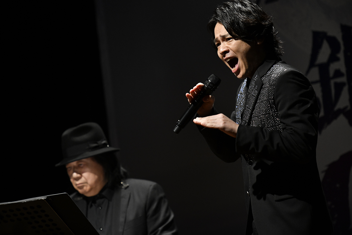 ここで、主人公・星野鉄郎を演じる中川晃教が登場。制作発表のみの特別ver.として、ミッキー吉野の伴奏のもと、本作のメインテーマ「マイ・ディグニティ」を披露した。