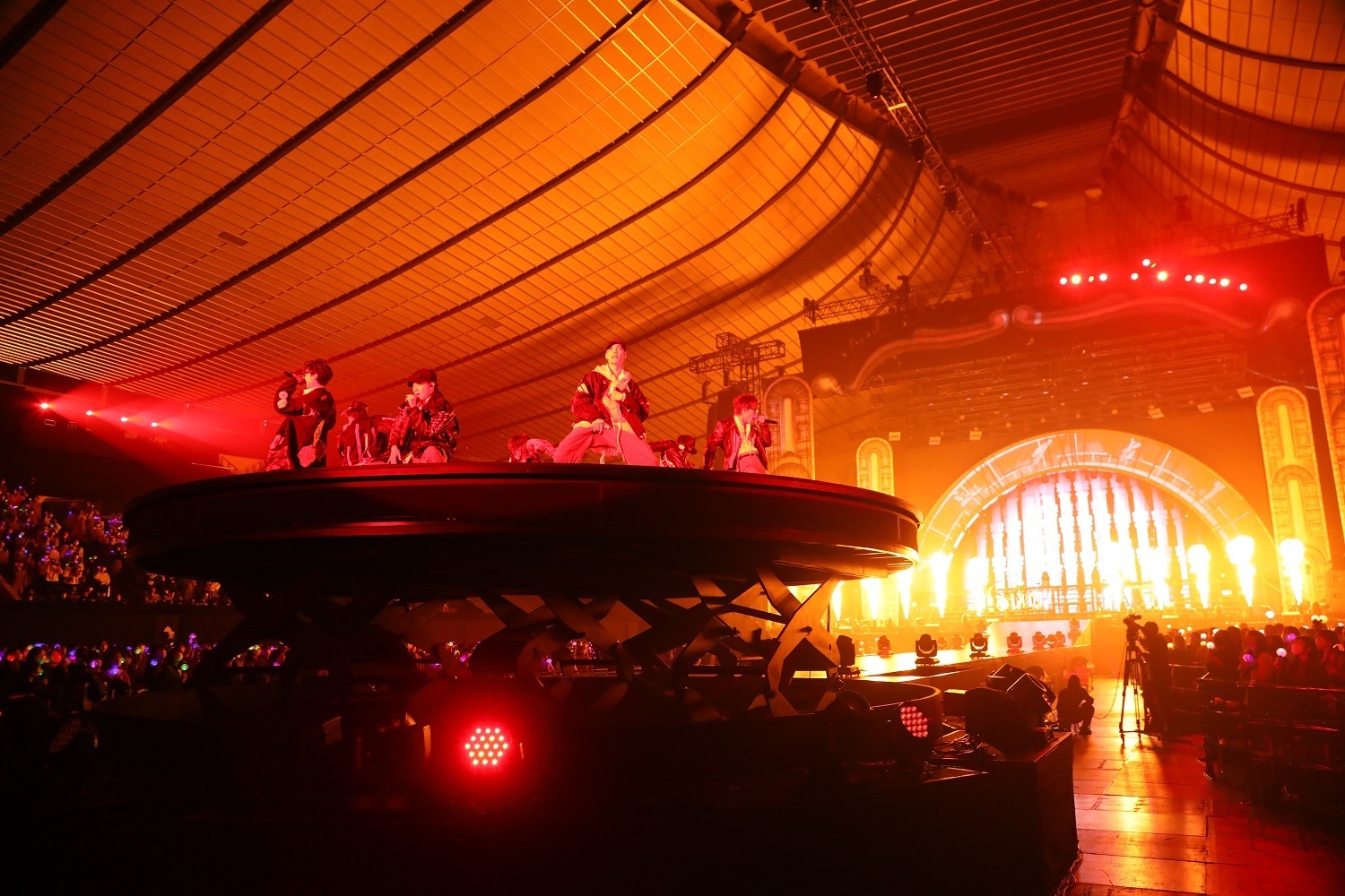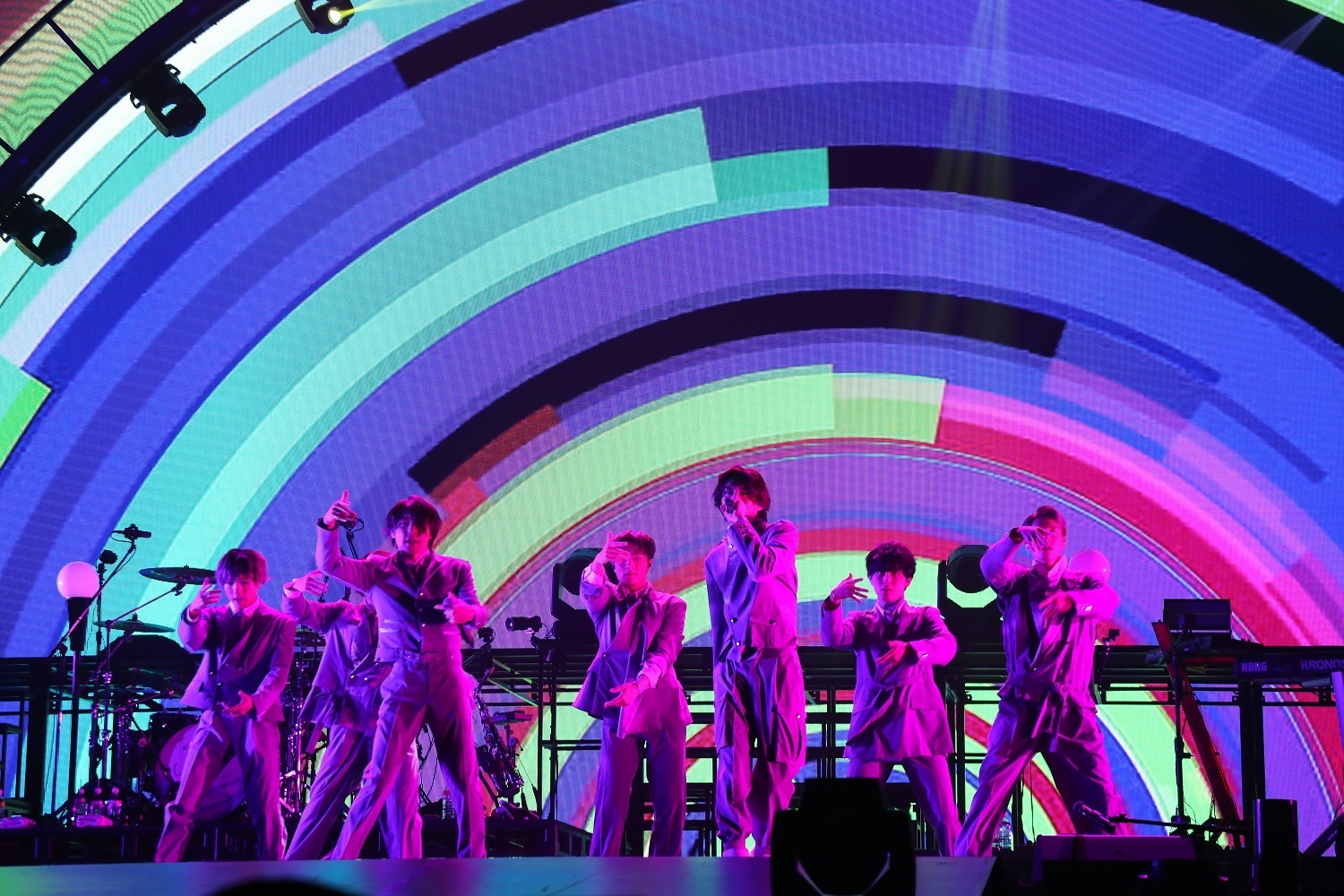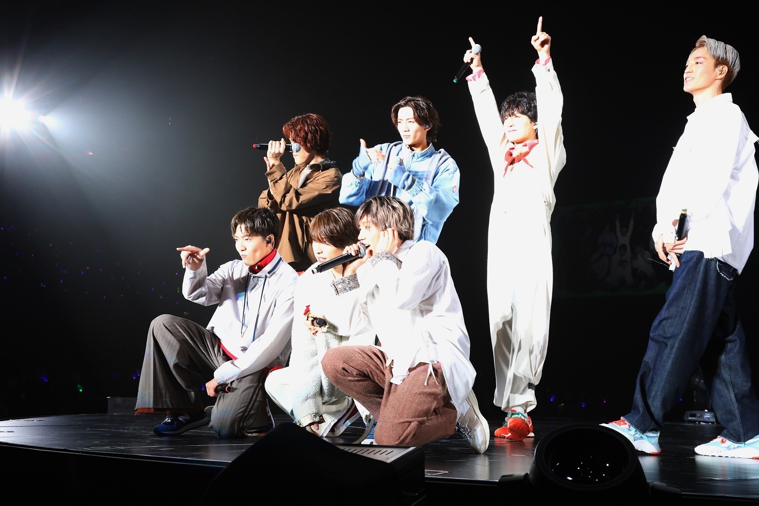 ツアーファイナル2月27日の国立代々木競技場・第一体育館の最終公演では、メジャーデビュー曲「LIFE」や、パワフルなスタジアムロック「agitate」をバンド演奏。「MONSTER」ではLEDビジョンを駆使した演出で激しいダンスパフォーマンスを披露し、会場は一気に熱量を増した。アンコールでは、メンバー阿部顕嵐が主演をつとめる映画『ツーアウトフルベース』主題歌の「レスポール」を、ギターをかき鳴らしながら熱唱。圧倒的なパフォーマンスで観客を魅了した。