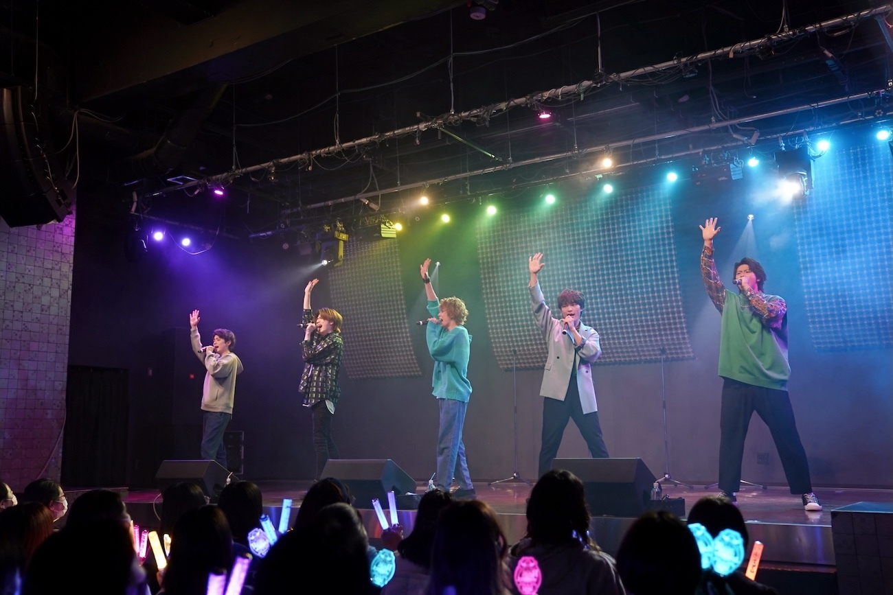 2.5次元舞台などを中心に活躍する若手俳優で結成された、新感覚アーティストグループ・TFG。2021年4月にメンバー5人となってから、7月・11月と定期的に有観客でのワンマンライブを実施してきたTFGが、2月26日(土)・27日(日)と2日間4公演に渡ってライブ公演を行った。本記事では、2月27日の昼夜2公演のオフィシャルレポートをお届けする。