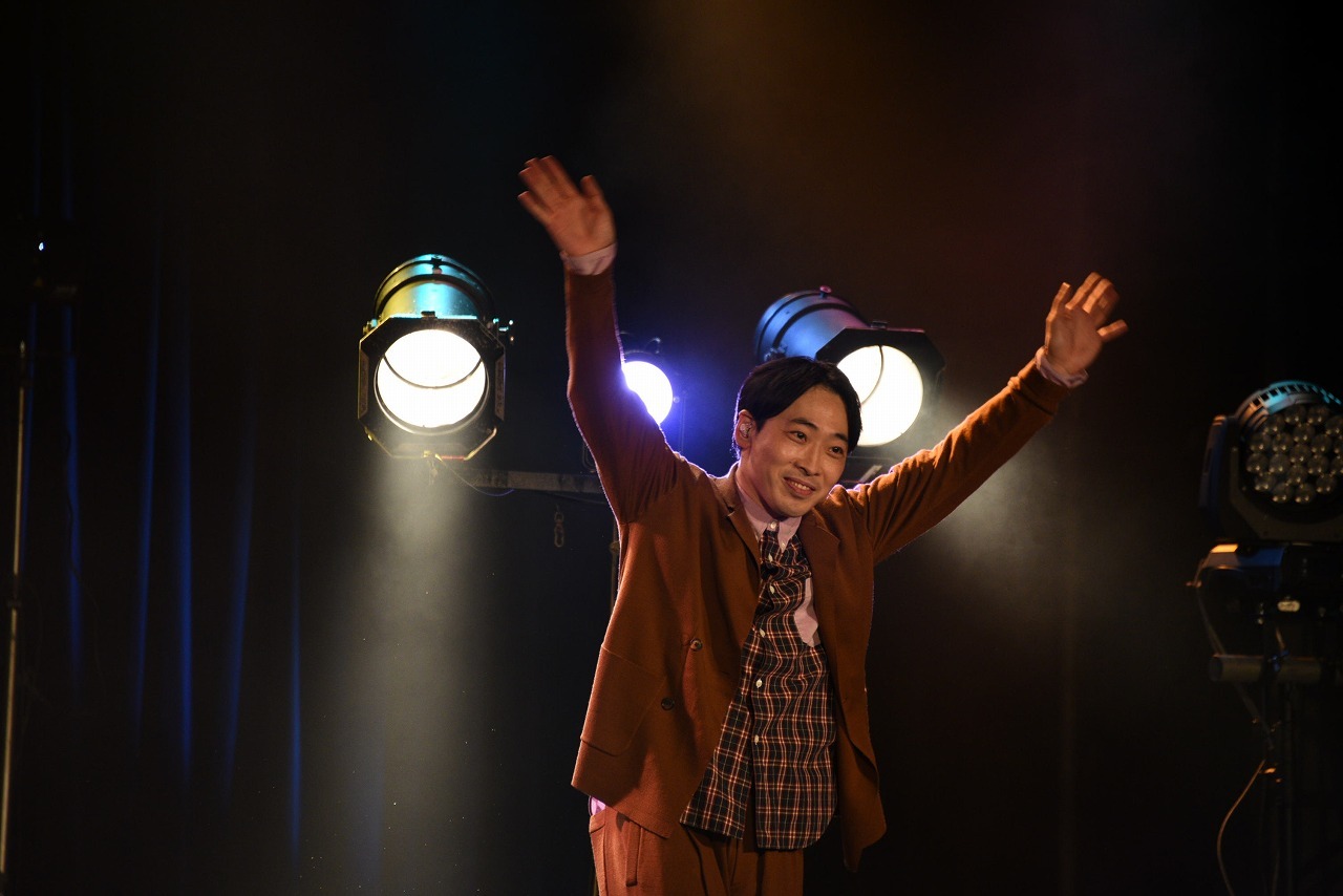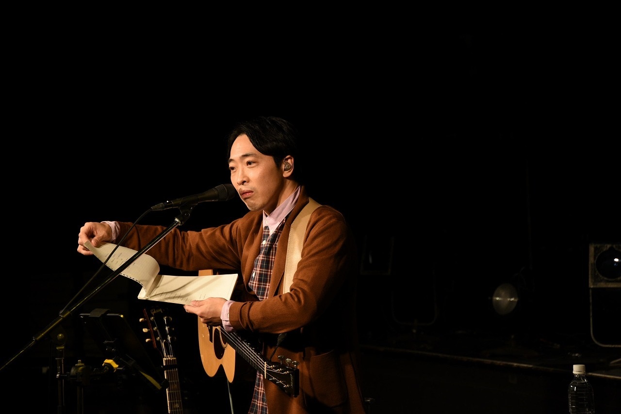 さて、ステージ後半は一気に進んでいったが、そのなかでもやはりバンド編と重なる曲の、バンド編の演奏とのコントラストが印象的だった。例えば「だんまり」は、まだ夕方だったバンド編とは違って十分に夜と言える時間になっていたから、窓から夜が流れ込んできていよいよ寂しくなる主人公の想いがよりビビッドに感じられたりしたわけだ。その一方で、弾き語りスタイルだからこそ彼の音楽の特性である人懐っこさがよりくっきりと感じられて、その余韻が家に辿り着くまでの間、じんわりと気持ちを温めてくれた。
