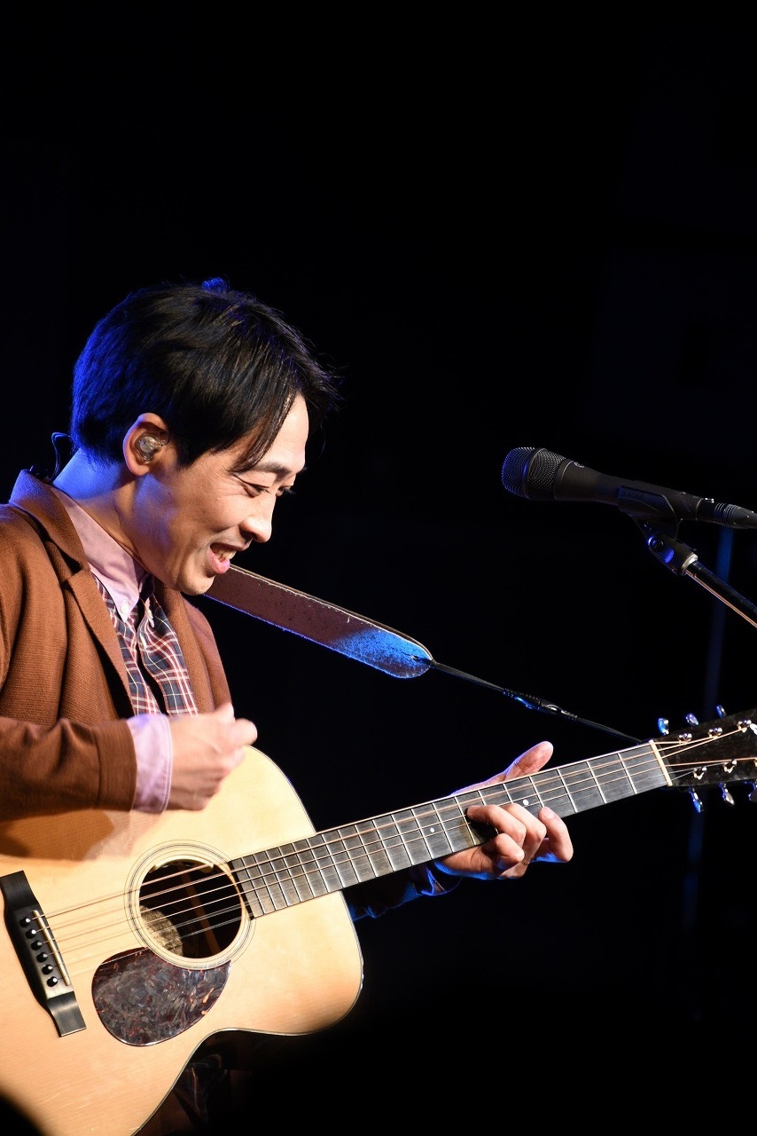 ところで、同じ日に、同じ会場で、でも別スタイル/別内容のステージがあると、それはやはり本人の意図とは関係なく、ひとつ目のステージが二つ目のステージの前フリになる。バンド編の最後に演った曲をこちらでは1曲目に演るというのは、もちろん堂島自身にも何がしかの意図があるのだろうが、それとは別に状況が先に書いたような状況だし、演奏もギター1本の弾き語りスタイルだから、歌の世界の手渡し感が自然と高まるのは言うまでもないこと。おまけに、バンド編で1本のステージを通して“君のために何ができるだろう?”と真摯に考え続けていることを感じさせたばかりだから、例えば《喜びは大きくなくたっていいんだ》という「きみのため」のフレーズが気持ちの深いところにすんなり着地する。このこじんまりとした、仲間内の後夜祭のような親密さこそが幸せなんだ、と。