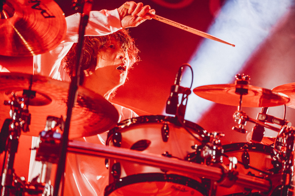 しゃべるよりも早く曲をやりたい。村松の言葉はぶっきらぼうだがとても優しい。「Beginning」から「Recall」へ、一体感を煽るキャッチーなサビと、推進力いっぱいのリズムに乗せて、観客の手が上がりっぱなしになる。聴かせどころで思いっきり歌詞を忘れた村松が「間違えた!」と笑い、さらにテンションを上げる。これがライブ。