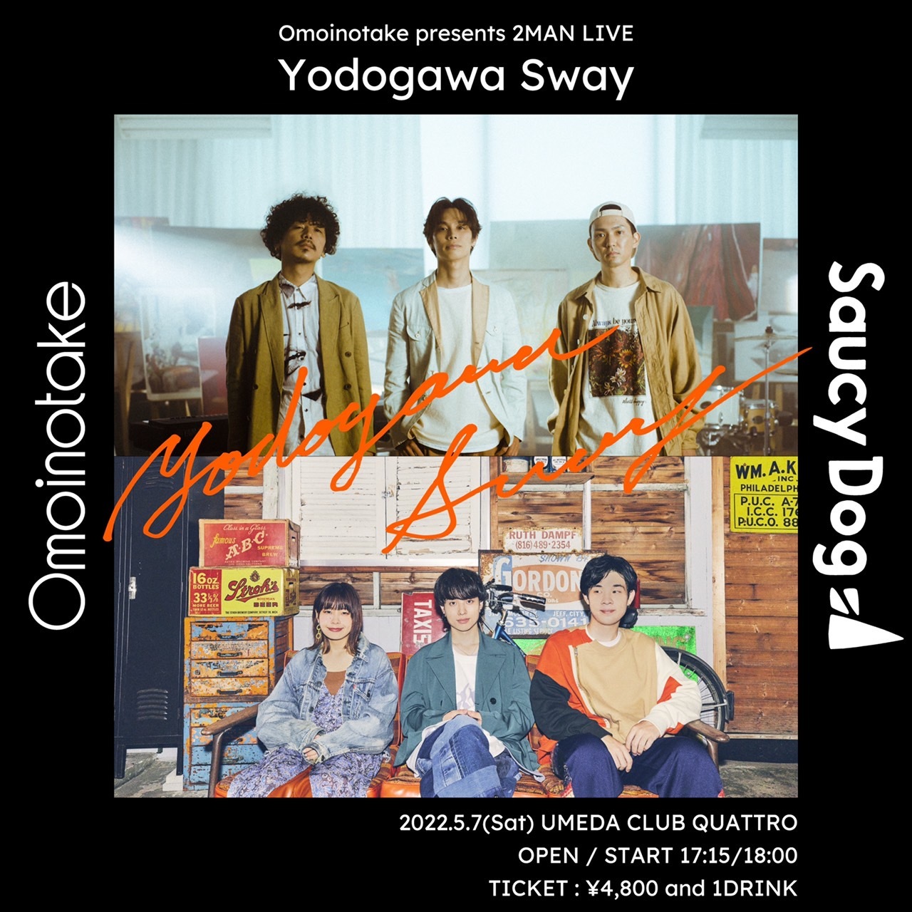 Omoinotakeが2022年5月7日(土)に梅田クアトロにてSaucy Dogとの2マンライブ『Yodogawa Sway』を開催する。