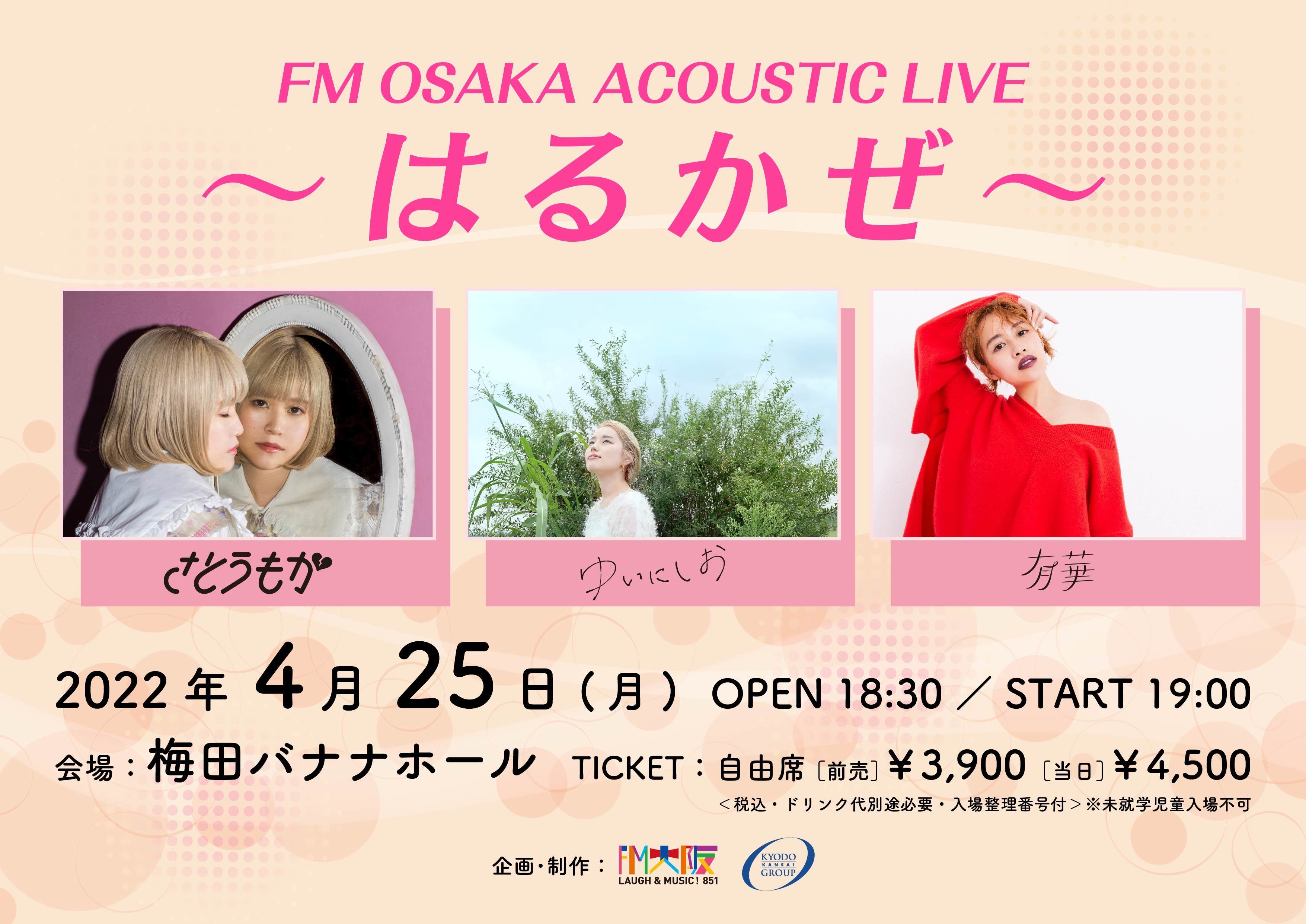 FM大阪では、2021年3月に50周年を記念して、女性ソロアーティスト3組によるライブイベント『FM 大阪 50th Anniversary LIVE 〜はるかぜ〜』を開催。その第2弾イベントとして、今年は4月25日(月)に『FM OSAKA ACOUSTIC LIVE 〜はるかぜ〜』を開催する。