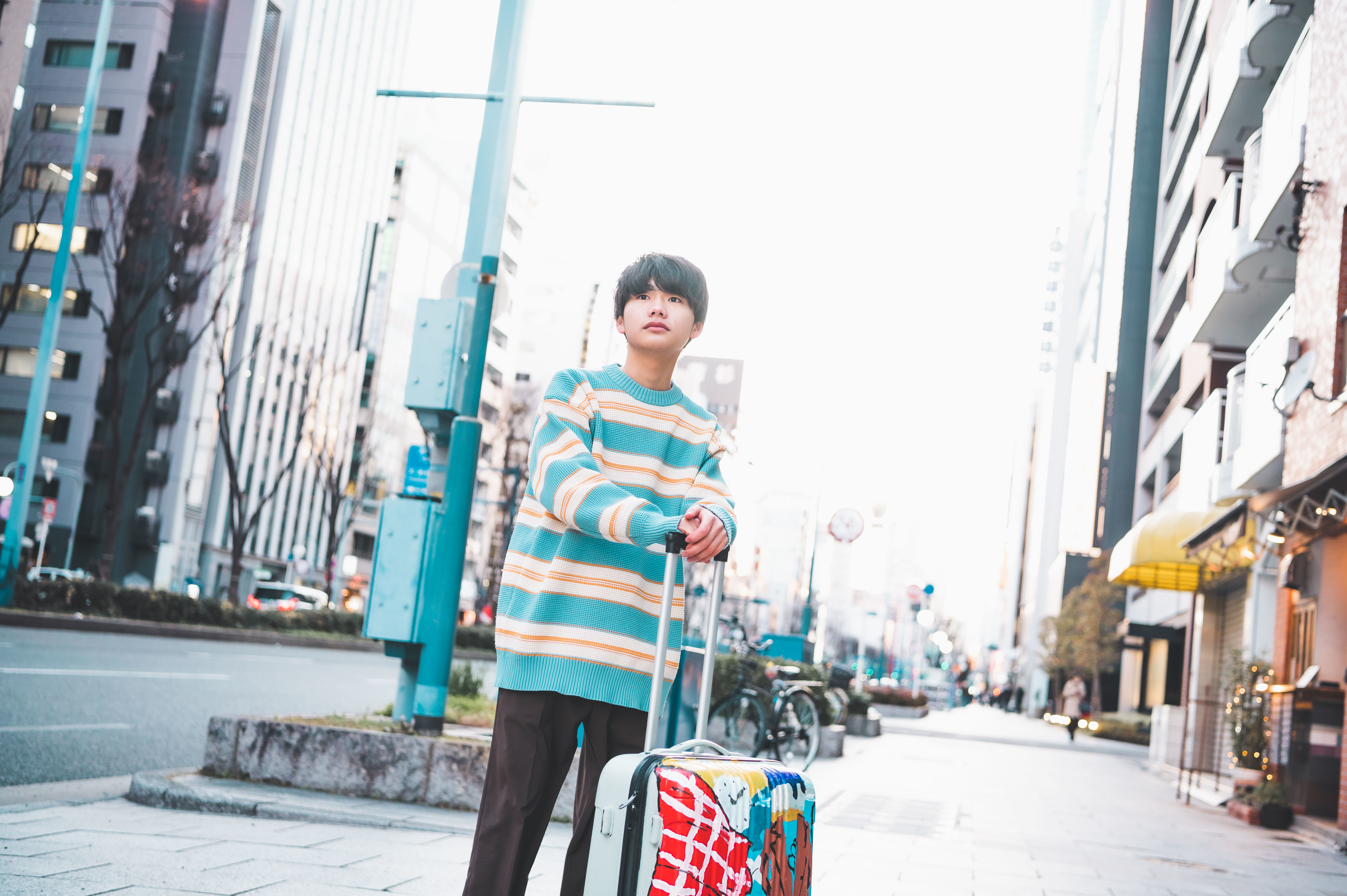 『恋ステ』に参加したことをキッカケに知ってもらったり、お仕事で熊本県外に出る機会が多くなったことをイメージ出来るアルバム名にしようと思ってたんです。ジャケットのイラストは僕がiPadで描いたんですけど、それをもとに、実際のキャリーケースにもジャケットの絵を描きました。キャリーケースに描いた絵は全部アルバムの曲がモチーフなんです。