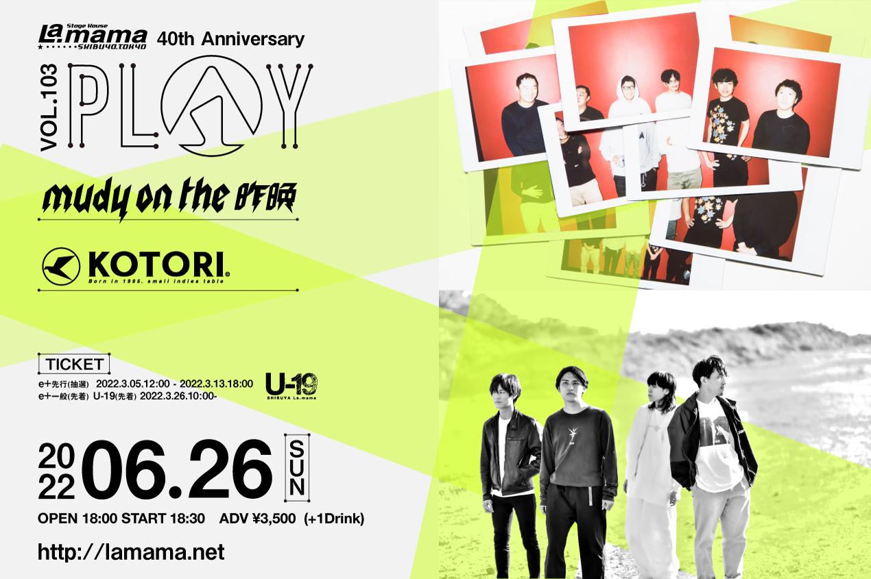渋谷La.mamaの恒例企画『PLAY』にて、KOTORIとmudy on the 昨晩の2マンが決定した。