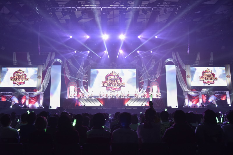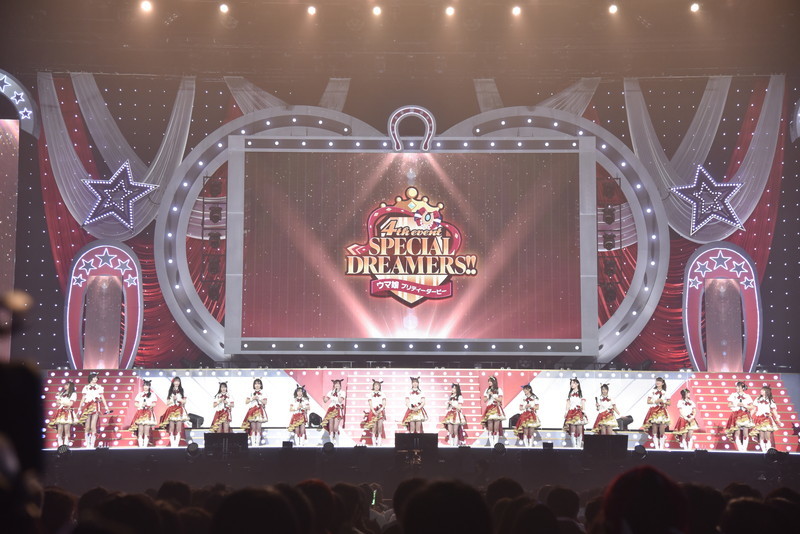 オープニングを飾るナンバーは、この4thイベントのテーマソング「We are DREAMERS!!」。今回のステージ自体も、ゲーム中のライブで同曲を見る際に登場するステージをリアルで再現したものだ。