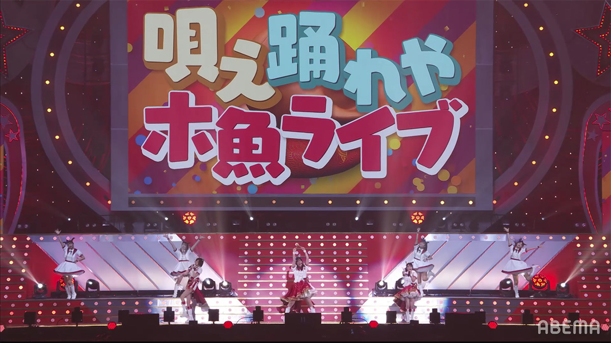 同じ冠名の後輩・マチカネタンホイザ役の遠野ひかるが「鼻血出さないように」と応援したり、配信版ではARで巨大なダルマや招き猫が会場内を飛び回るなど徹頭徹尾ハイテンションなステージに。客席もそんな賑やかさに応える様に極彩色のコンサートライトの光で包まれながら盛り上がった。