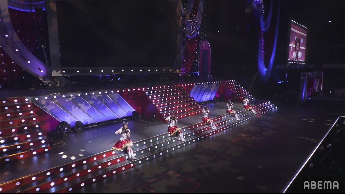 TVアニメ第2期・第1話でのインパクトが印象深いナンバー「winning the soul」。ゲーム内ではクラシック三冠レースを勝たなければ唄えないこのナンバーを、トウカイテイオー役・Machicoを筆頭に、ゲーム内のシナリオでクラシック路線に果敢に挑んだウマ娘を演じた5人が熱唱。ステージ最上段に5人が並び、燃える様な赤とオレンジのライティングの中で叩きつける様な力強いボーカルで迫力満点のステージを創り上げていった。