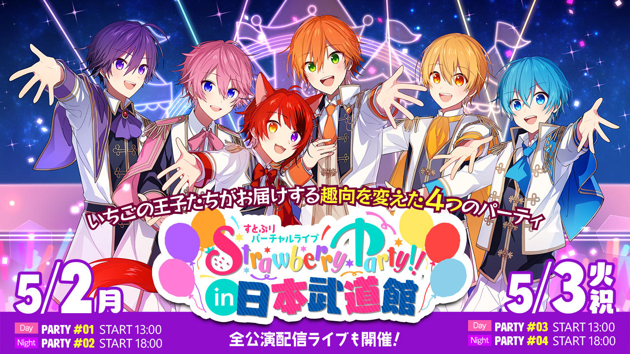 すとぷりのバーチャルライブ『Strawberry Party!! in 日本武道館』が5月2日(月)・3日(火・祝)の2日間にわたって開催されることが決定した。
