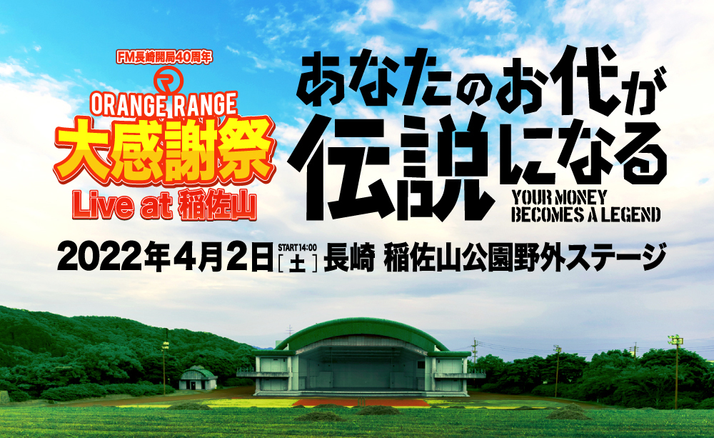 2022年4月2日(土)、長崎県の稲佐山公園野外ステージにて、FM長崎の開局40周年を記念して『ORANGE RANGE 大感謝祭Live at 稲佐山』が開催される。
