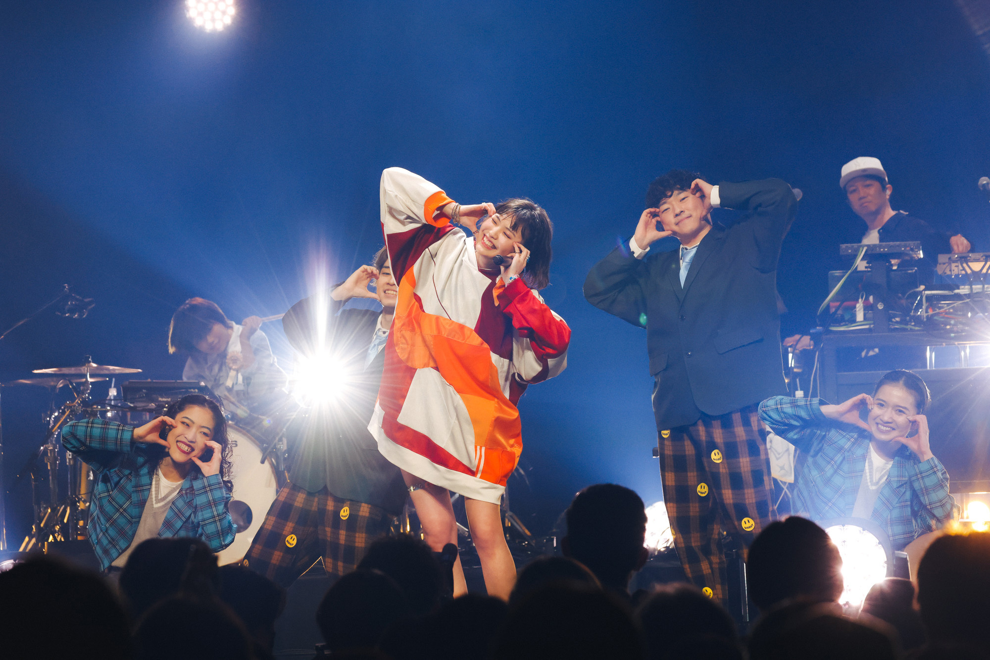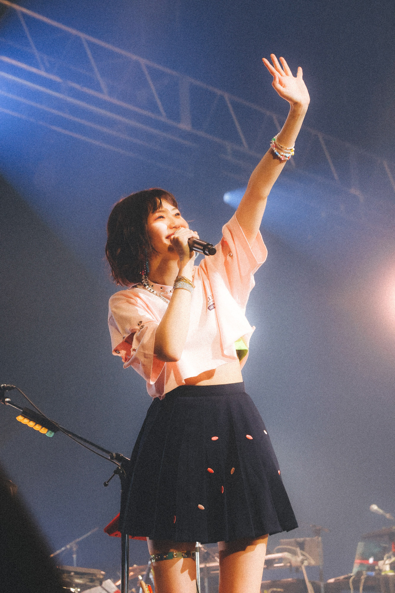 荒ぶる思春期の心模様を映す「友よ恋よ」、三阪自身がドラムサンプラーを叩いたオーディエンスとのリズム遊びからの、「Bling Bling」。「今日主役の最高のみんな!」という三阪の言葉に、オーディエンスも左右に手を振ったりクラップしたりして応えて、一体感がどんどん高まっていく。