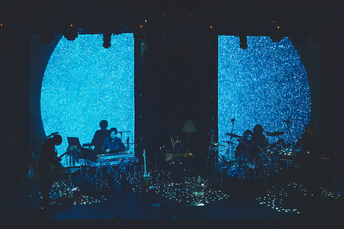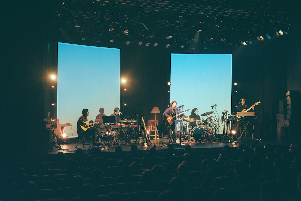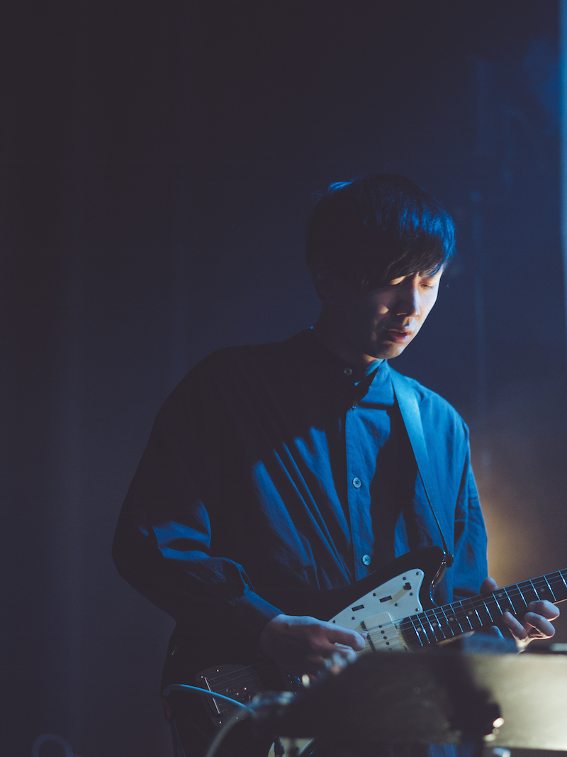 ワンマンライブとしては実に一昨年の12月以来。この間、アルバム『はためき』のリリース、ギターの井上拓哉とドラムの垣守翔真の卒業(脱退)、そして3人体制で初のEP『pre』のリリースなど、バンドには大きな動きがあった。今回は11月に行われたイベント『Soundscape』でもサポートを努めた西田修大(Gt)と深谷雄一(Dr)を迎え、演出には同企画を手掛け続けている石向洋祐(POOL inc.)、映像担当で写真家の濱田英明もスタッフに加わったスペシャルな布陣だ。