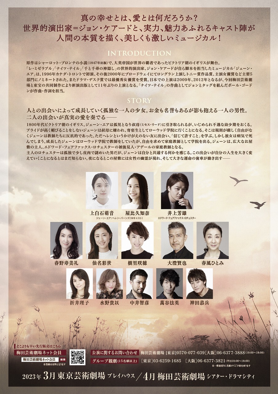 2023年3月東京、4月大阪にて、ミュージカル『ジェーン・エア』が上演されることが決定した。