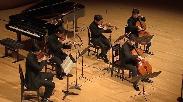 そうした宮田のアンサンブル力が存分に発揮されたのが、ウェールズ弦楽四重奏団との《鮫》であった。これまで誰も挑戦したことのなかったチェロと弦楽四重奏による《鮫》は、スリリングな魅力に溢れ、宮田の圧倒的なテクニックを存分に堪能できるものであったが、ただ超絶技巧をソリスティックに披露するのではなく、合奏のコントロールはウェールズ弦楽四重奏団に委ねて、室内楽として統一感のある演奏を聴かせた。ウェールズ弦楽四重奏団のドライで研ぎ澄まされた響きに宮田の太く力強い音が重なったとき、それはソリストと伴奏の「1+4」ではなく5人でひとつの合奏体として成立していた。