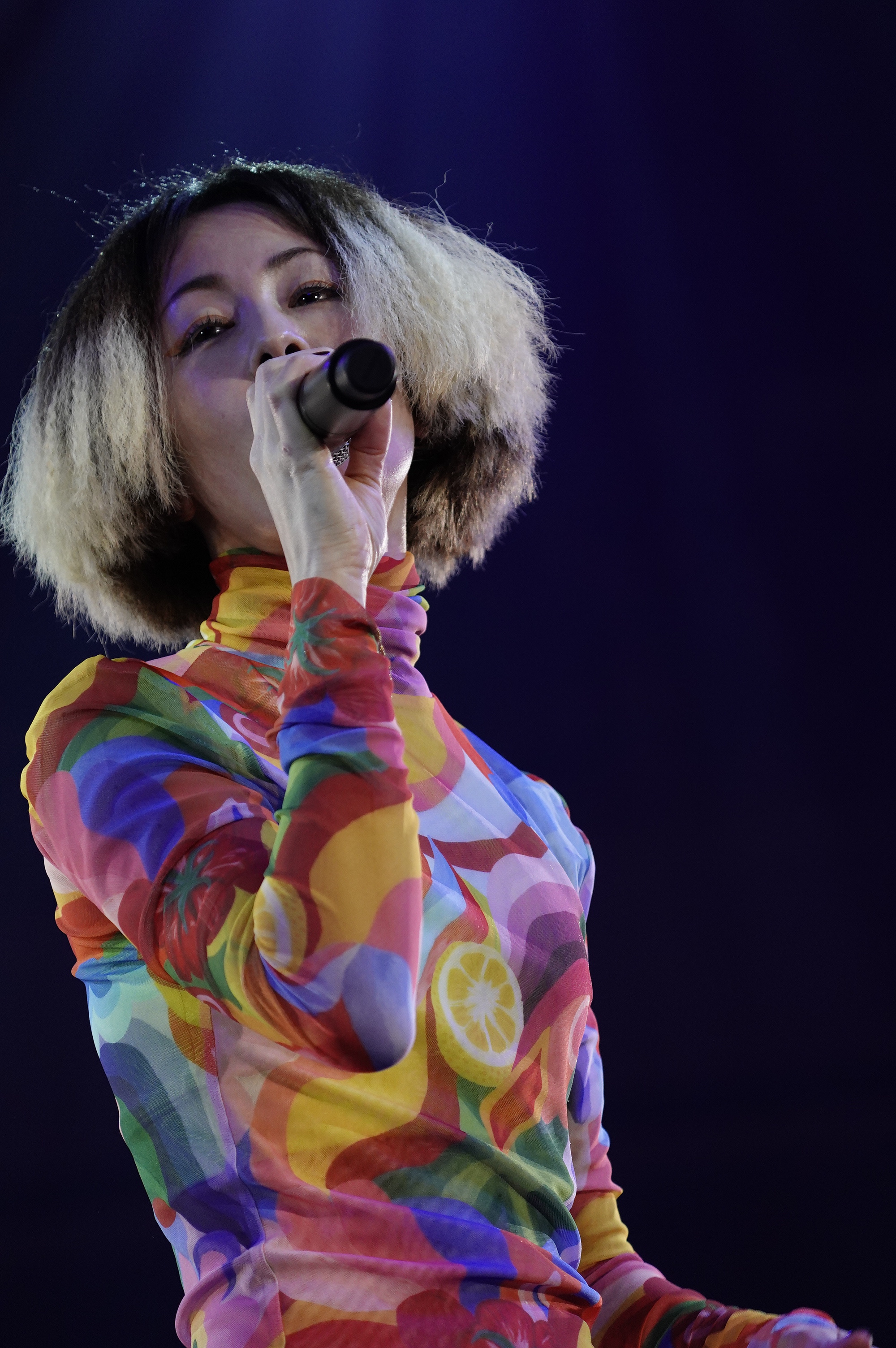 3回目の出演となるAnlyは、The Beatles「Come Together」のカバーからライブを開始。2曲目の「VOLTAGE」ではサンプリングルーパーを使用し、壮大なステージングを展開すると、客席はそれに呼応するようにクラップで参加して、国技館は一体となった。3曲目の「FIRE」でも音を重ねていき、重厚感のあるサウンドでオーディエンスを魅了していく。ラストは「祈るように歌わせてください」と言ってから「星瞬~Star Wink~」を優しく、時に情熱的に歌い上げた。