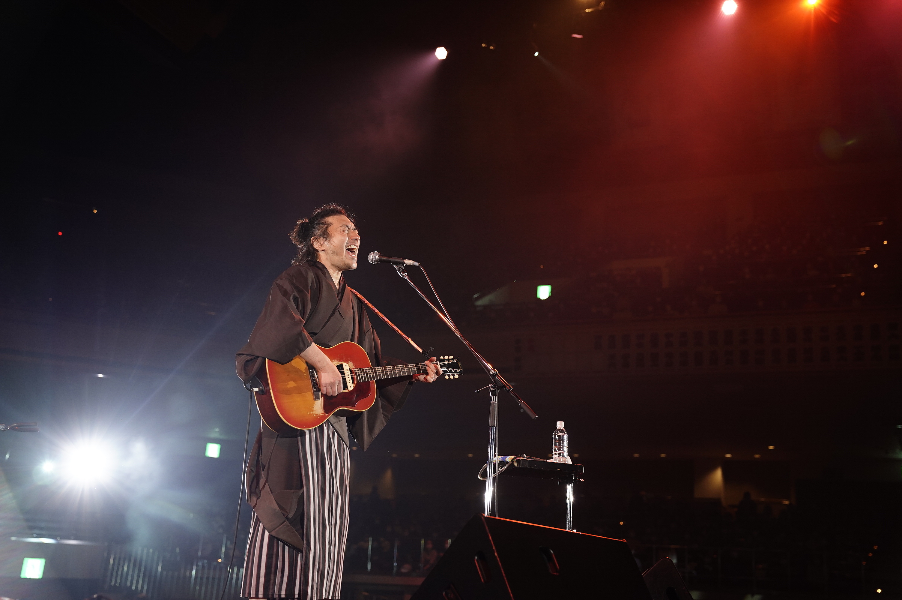 和装姿で登場したトータス松本は「春一番」からエネルギッシュなパフォーマンスをみせ、2曲目には珠玉のバラード曲「バンザイ~好きでよかった~」を真っ直ぐに歌い上げた。「笑えれば」を披露する前のMCでは「こんな景色を見るのがめちゃくちゃ久しぶりで、なんか泣きそうなんですよ」と赤裸々な気持ちを明かす場面も。最後は“この曲を歌いたい”と急遽セットリストを変更して「ワンダフル・ワールド」を披露することに。トータスは歌詞も<どの星を見つめて/お願いすればいいのだろう>と、一部アドリブで差し替えていた。その熱演に呼ばれるように客席からは自然とクラップが起き、国技館に一体感が生み出されていた。