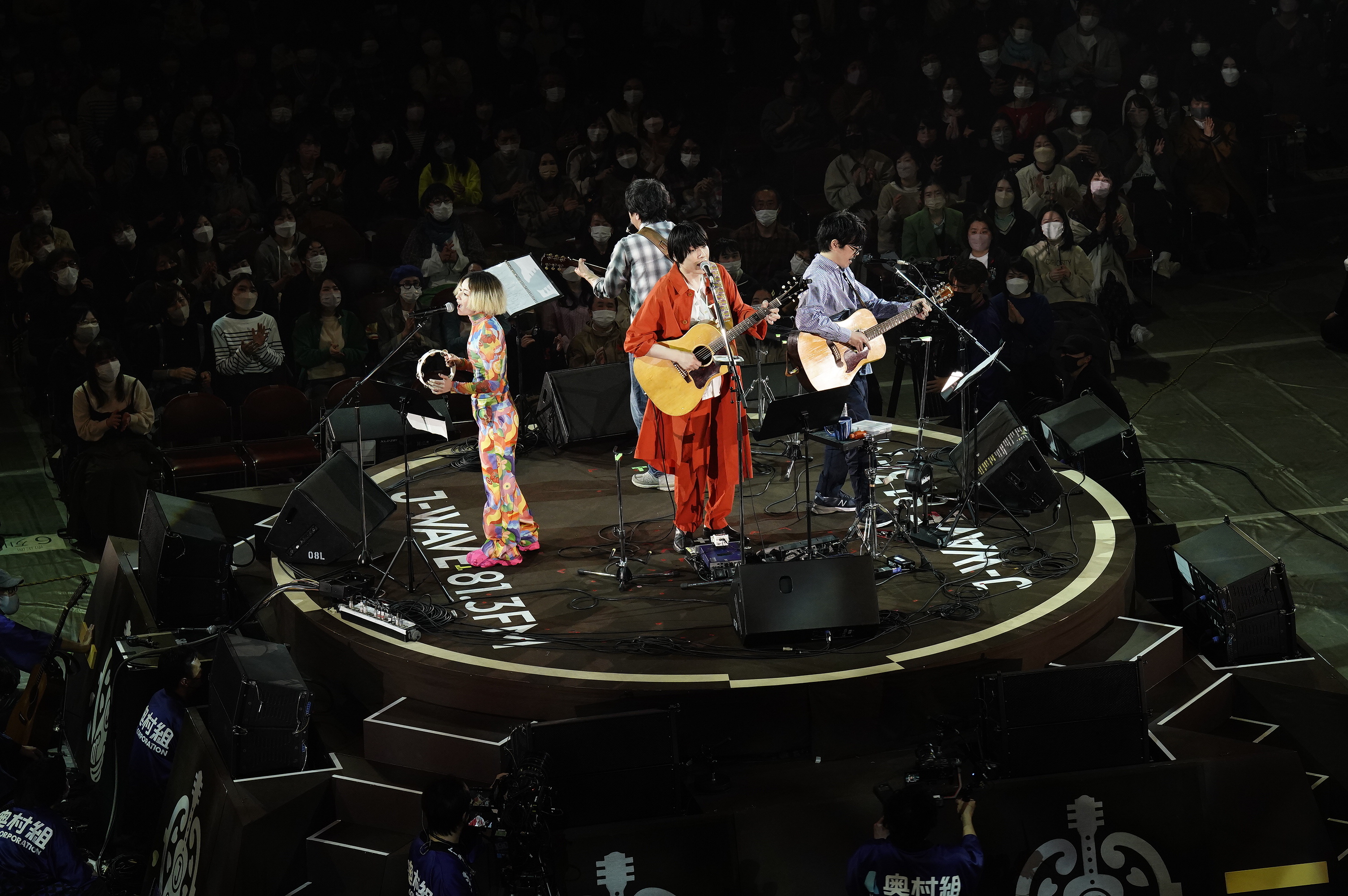 FMラジオ局J-WAVE(81.3FM)は、3月5日(土)・6日(日)の2日間、豪華アーティストがギター弾き語りで共演するライブイベント『J-WAVE TOKYO GUITAR JAMBOREE 2022 supported by 奥村組』(以下、ギタージャンボリー)を両国国技館で、新型コロナウイルス感染症拡大防止対策を徹底したうえ開催。3月6日(日)の公式レポートが到着した。