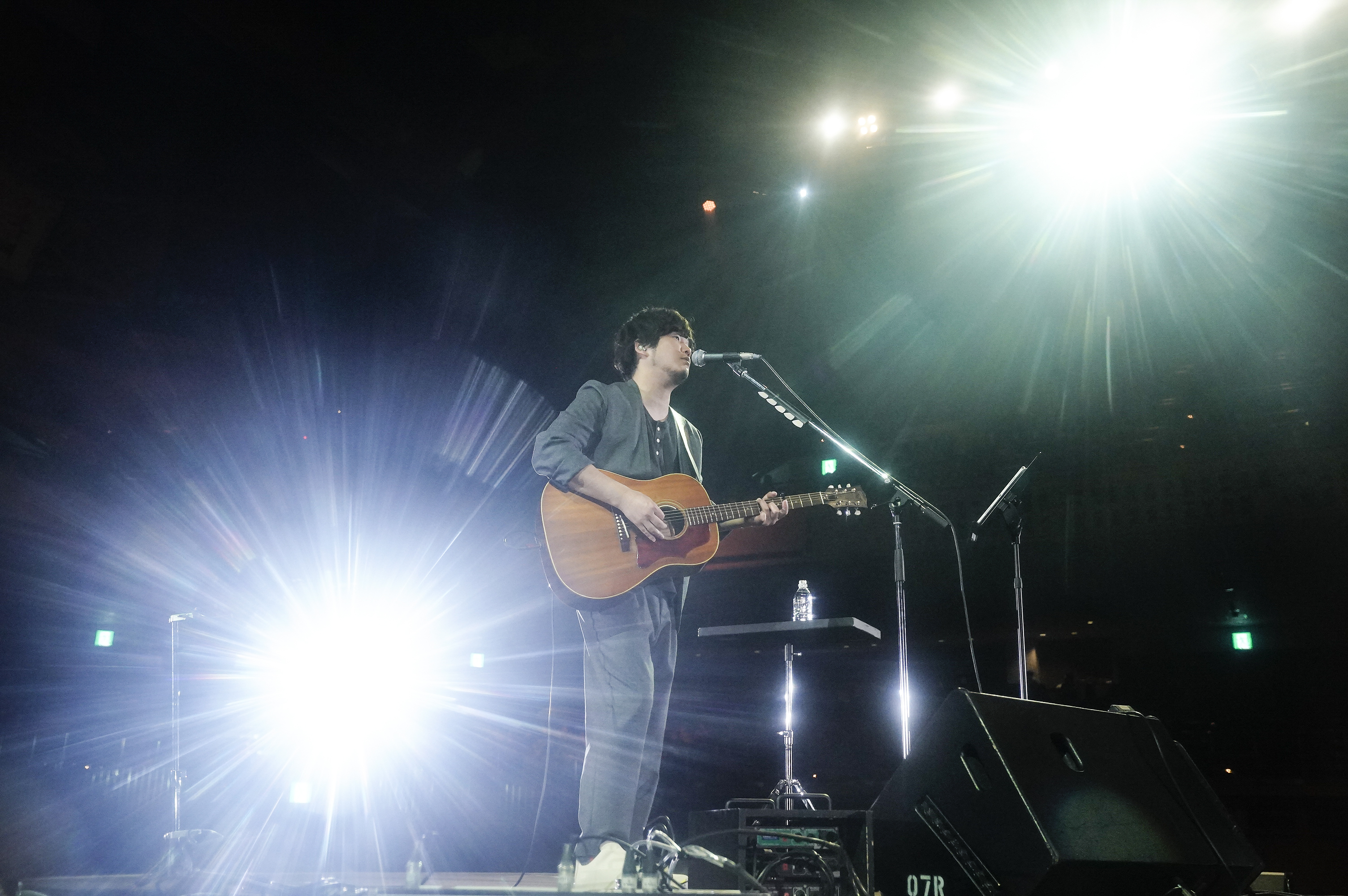 結成25周年記念ライブを2月に終えたばかりのくるり・岸田 繁が1曲目に選んだのは「The Veranda」。続く「ブレーメン」では曲の終盤で疾走感あるギターストロークを見せ、観客を沸かせた。3曲目に「Baby I Love You」を優しく歌い上げると、4曲目の「太陽のブルース」では間奏でハーモニカのアクセントも加えていた。ラストの奏でられたのは「ソングライン」。穏やかな余韻を残しつつ岸田はステージをあとにした。