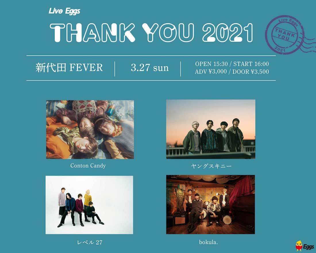 当日は「Eggs年間ランキング2021」にランクインした、Conton Candy、ヤングスキニー、レベル27、bokula.の4組が登場する。