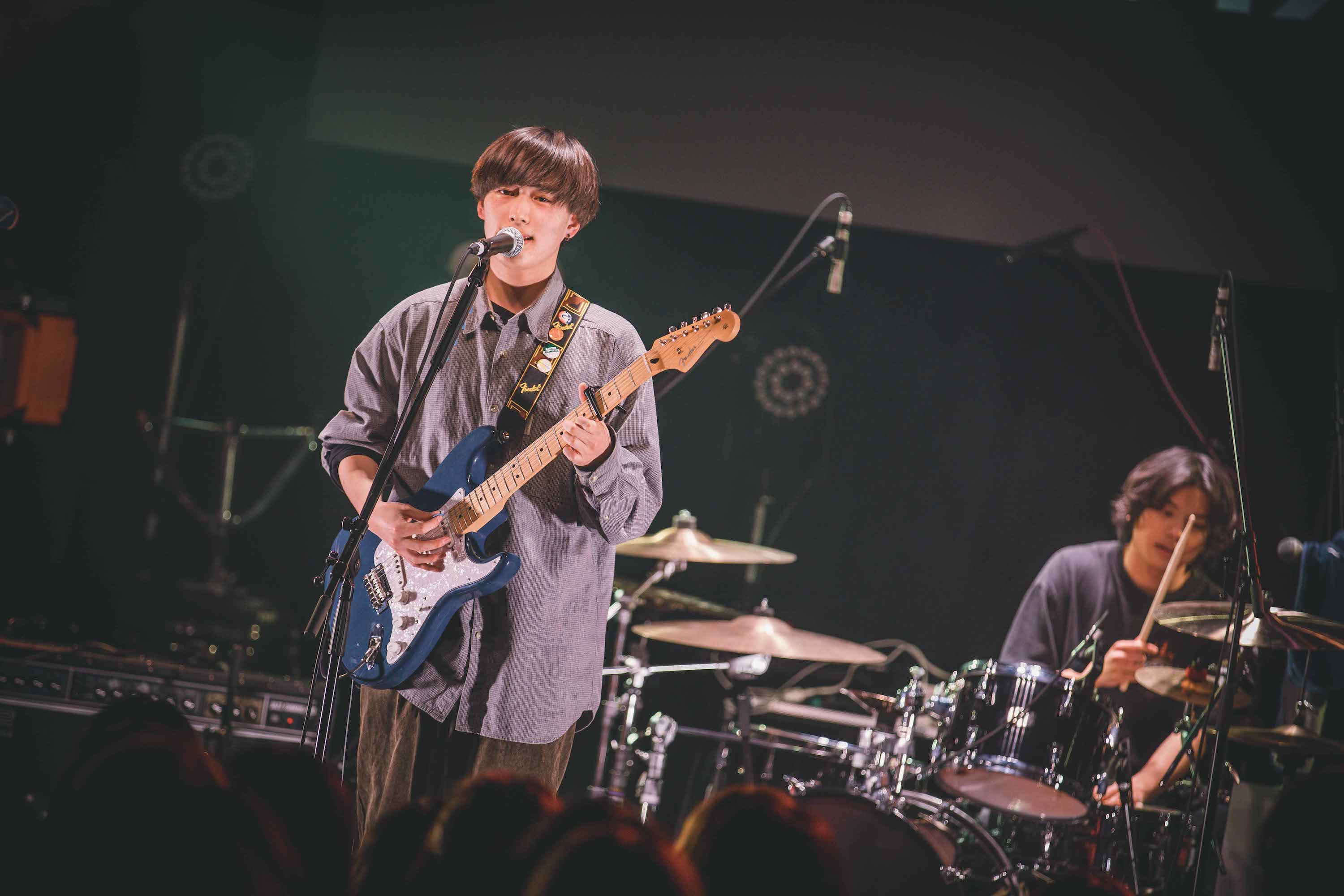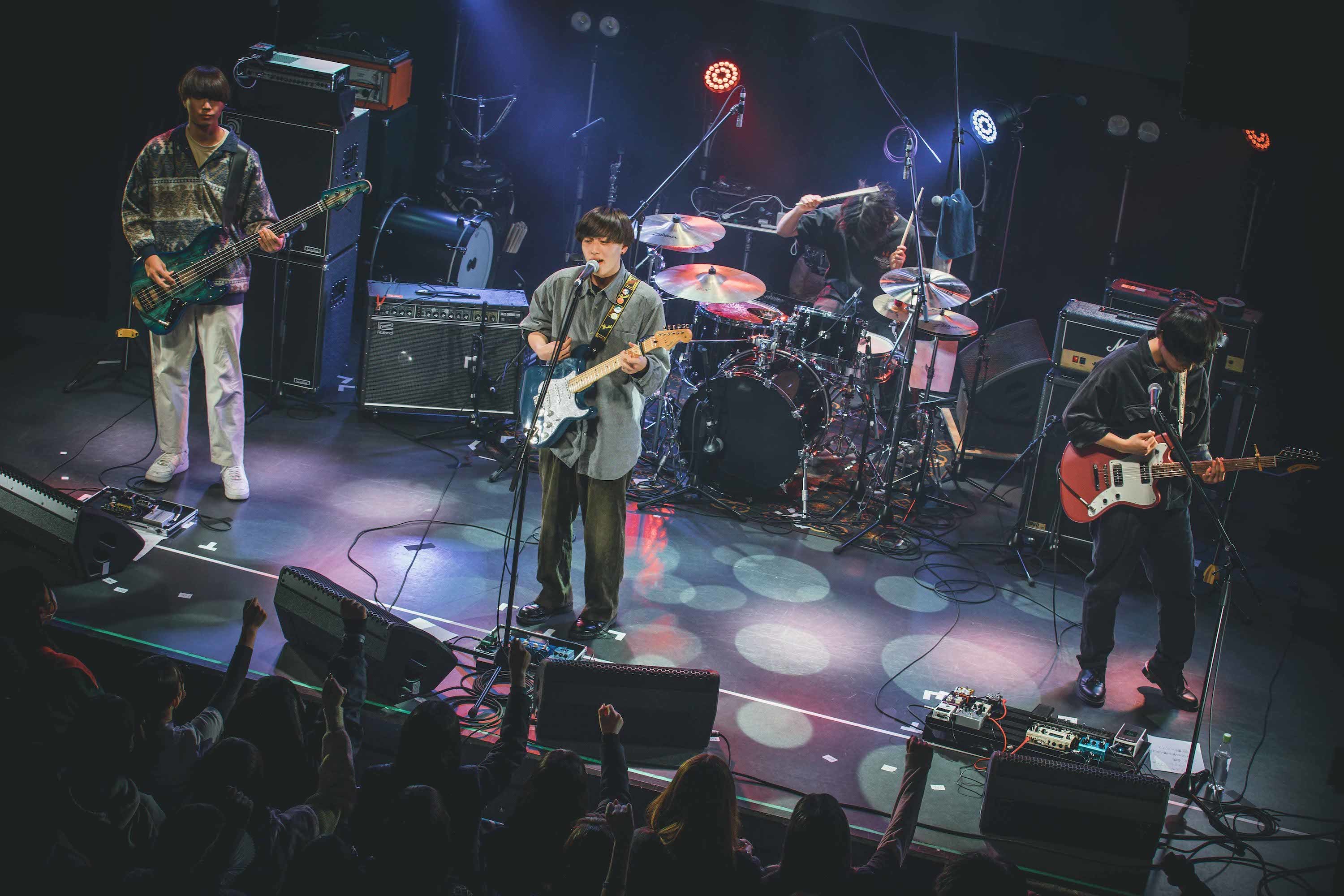 そんな彼らの演奏はかやゆー。の弾き語りにバンドが寄り添うバラード調の「ワンナイト」で始まった。そこから「この短い時間で歌いたいことがある! 伝えたいことがある!」と、かやゆー。が声を上げ、「愛鍵」「世界が僕を嫌いになっても」に繋げると、愛が届かない傷心を歌うかやゆー。のナイーブな歌声とともにゴンザレス(Gt)のダイナミックなギター・プレイ、リズムを支えるりょうと(Ba)としおん(Dr)によるタイトなアンサンブルが織りなすバンド・サウンドの魅力も印象づけていく。