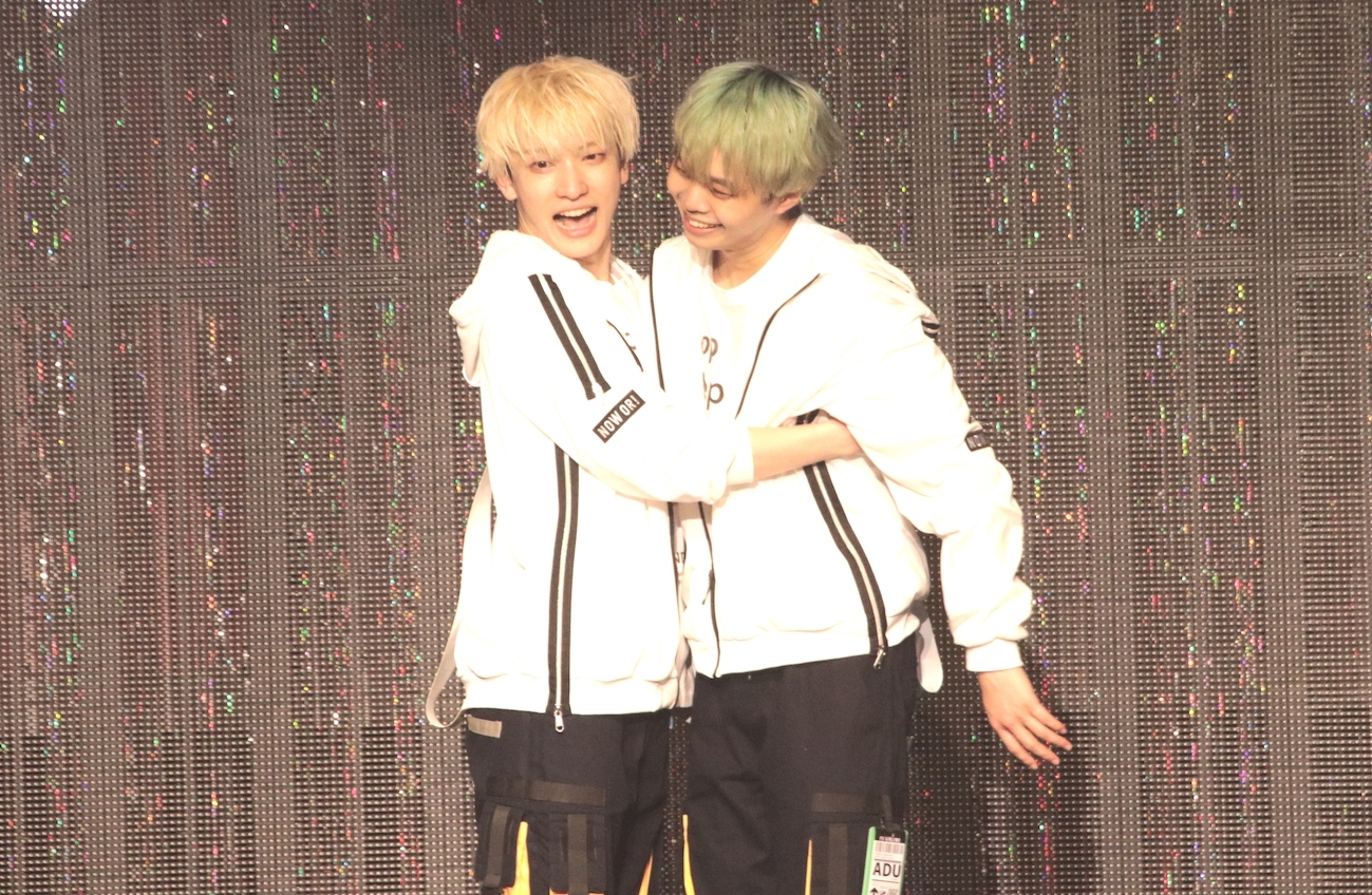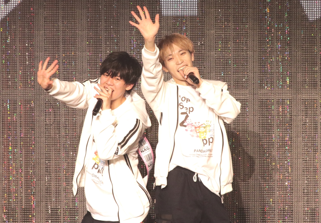 事前に告知され、各会場で異なる組み合わせで化学反応を起こすユニットコーナー、Zepp Nagoyaに登場したのはようた&たいがの2人だ。たいがが提案し、ようたも気持ちを同じくして選んだのは、むすめん。(パンダドラゴンの先輩・MeseMoa.の前身グループ)の2ndアルバム『2222』に収録の、気まぐれプリンス&とみたけのコラボ曲「Would you like to dance with me?」。ユニットオリジナル曲「センチメンタル」とはまた違ったよさがあって、寄り添ったり、見つめ合ったり、背中合わせになったりしながら、息ぴったりに重ねた歌声はとても美しかった。