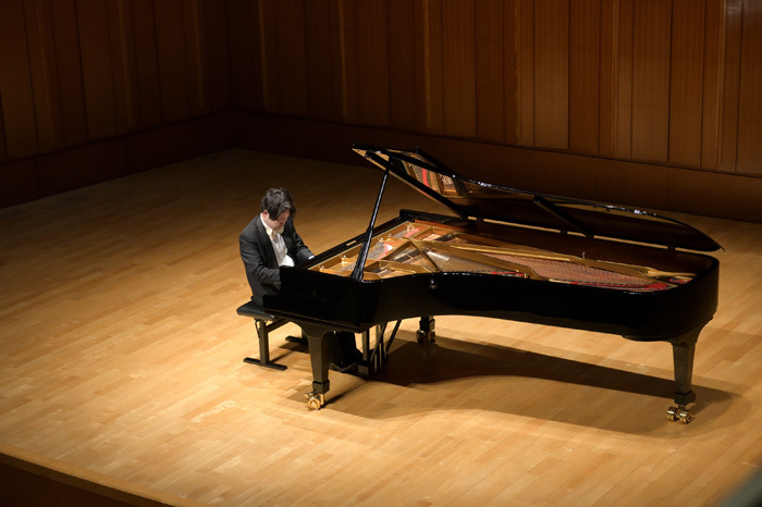 二曲目はドビュッシー 映像 第1集 より「水の反映」。水の音を感じさせる曲が二曲続き、心洗われる清々しい音とともに、まさに髙木が言うように “非日常的な世界” へと引き込まれてゆく。冒頭、高音部で奏でられる水面に輝く光のリフレクションの描写の美しさ。低音部と高音部の絶妙なバランス感を保ちつつ、光が水面をたゆたう情景を髙木は滔々と、そしてダイナミックに描き出してゆく。しかし、動的でスケールの大きいピアニズムも決して過剰になることなく、あくまでも内省的に光の反映を描き出し、この曲の持つ静謐さを巧みに表現していた。