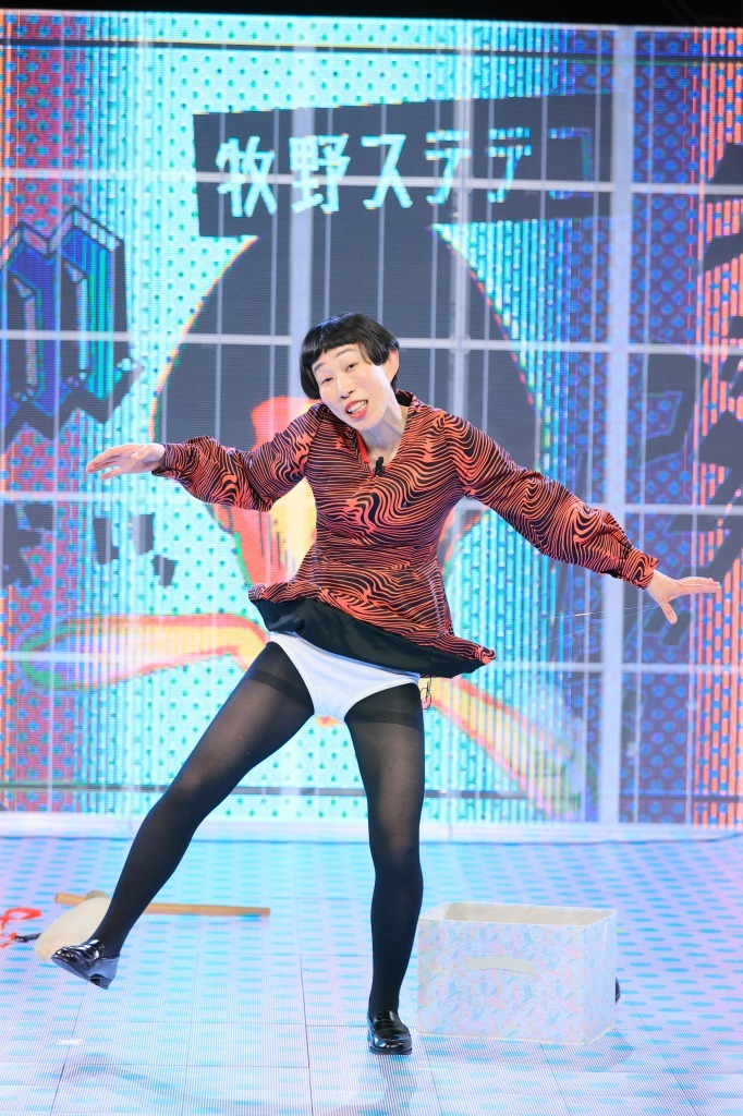 続く牧野ステテコは、歪なポールダンスを踊りながら「スーパーの入り口にこのポールを置いておいたら、犬が繋がれていた」などのポールあるある(?)をひたすらお届けし、投げキッスや生着替え、パンチラネタまでサービス。続くじゅんごは「いちばん嫌いなモノは野菜スティック!先端恐怖症!」などノリ重視の自由すぎる歌ネタを「(無観客配信ライブゆえ)疎外感が凄い(笑)」と怯えながらも畳み掛けていく。