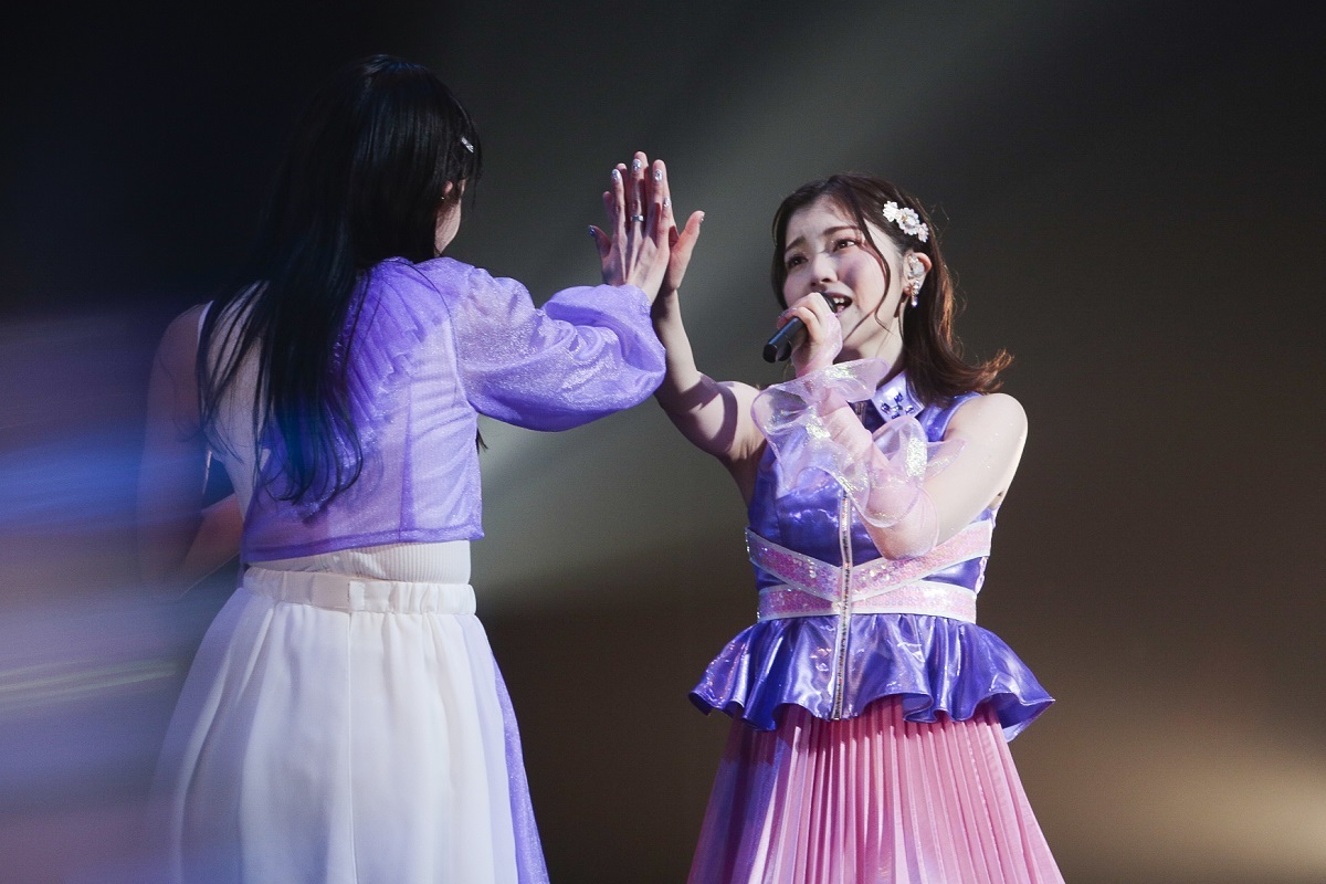 続く「虹のソルフェージュ」では、各々が思い思いの色にペンライトを点灯させ、虹色の景色を作りあげていったのが印象的だった。最後の曲はもちろん「Starcast」。降り注ぐ星空のようなLEDによるライティングで、曲の最後には「きっと今夜は星の雨になる」の歌詞通りの光景が目の前に広がっていた。