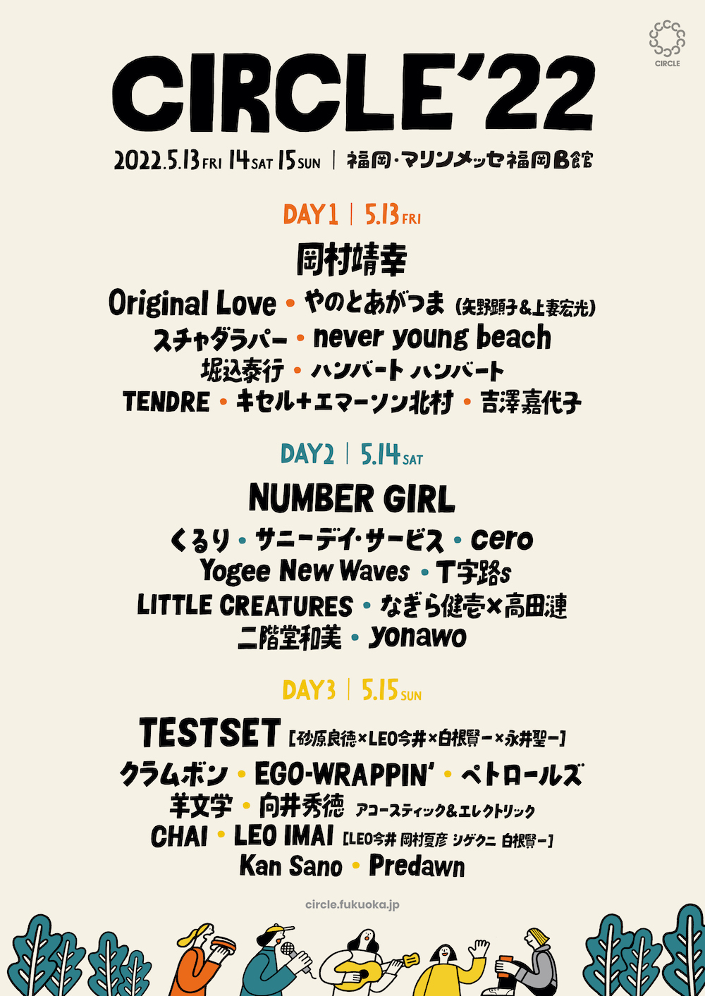 『CIRCLE’22』は、2022年5月13日(金)・14日(土)・15日(日)に福岡・マリンメッセ福岡B館にて開催される。また、出演アーティストも発表された。