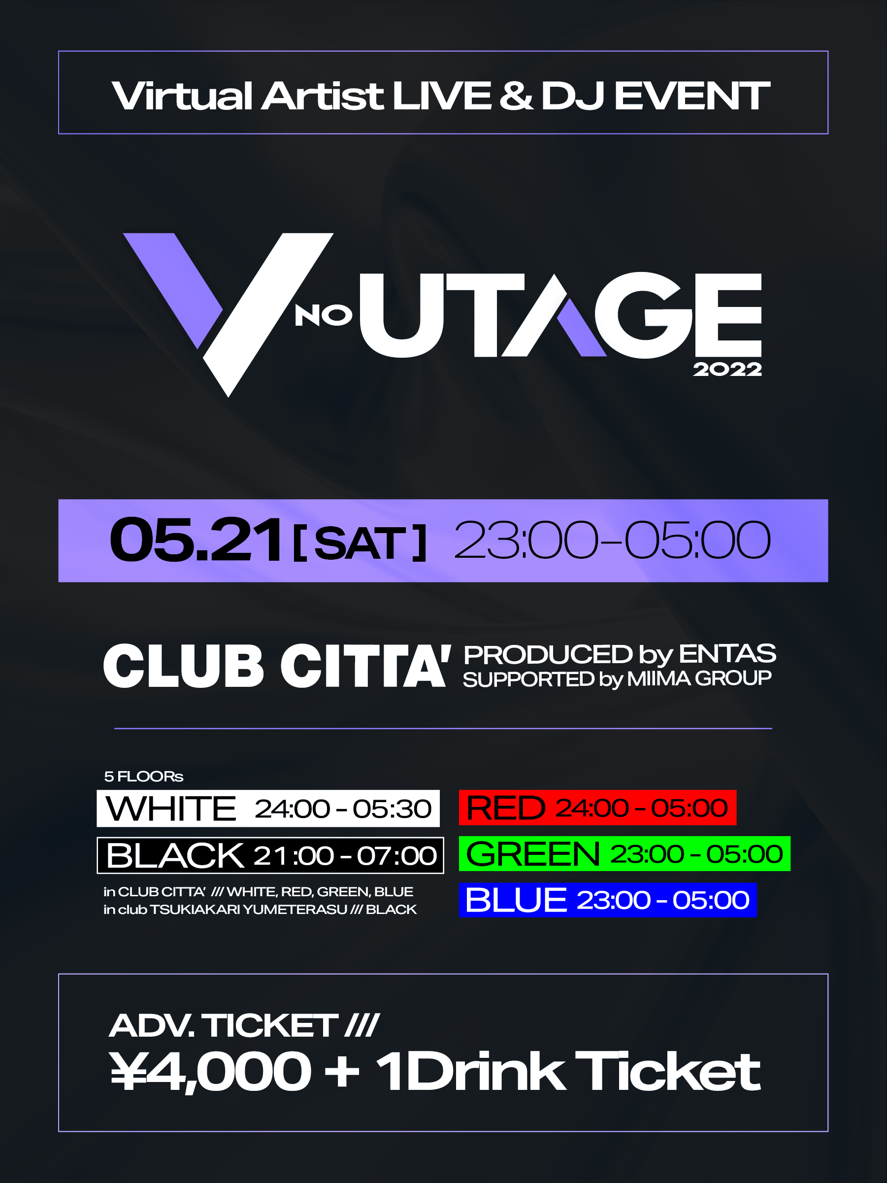 バーチャルYoutuber楽曲を使った大型DJイベント『Vの宴2022』が川崎CLUB CITTA'にて開催されることが決定した。