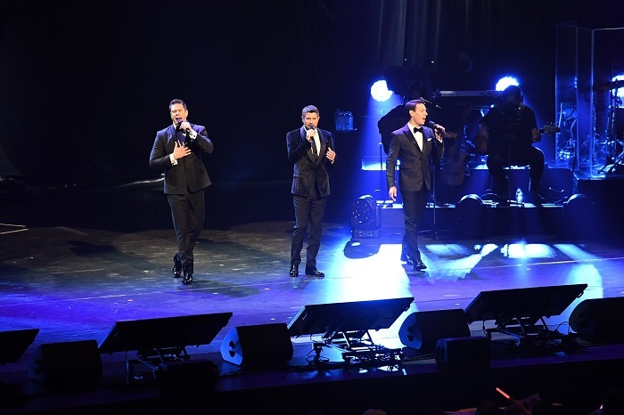華やかでスタイリッシュな黒のスーツで登場した3人のメンバーは、オーケストラをバックにドラマティックでゴージャスな歌声と絶妙のハーモニーを披露、その後ゲスト・シンガーのスティーヴン・ラブリエが参加、新しいハーモニーを生み出した。