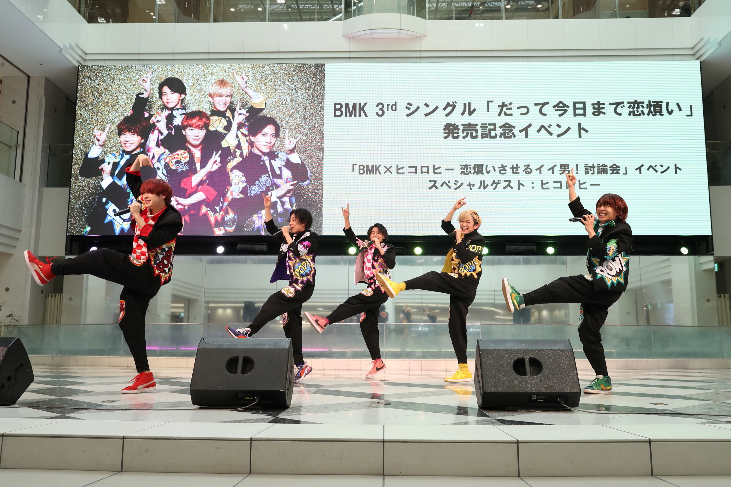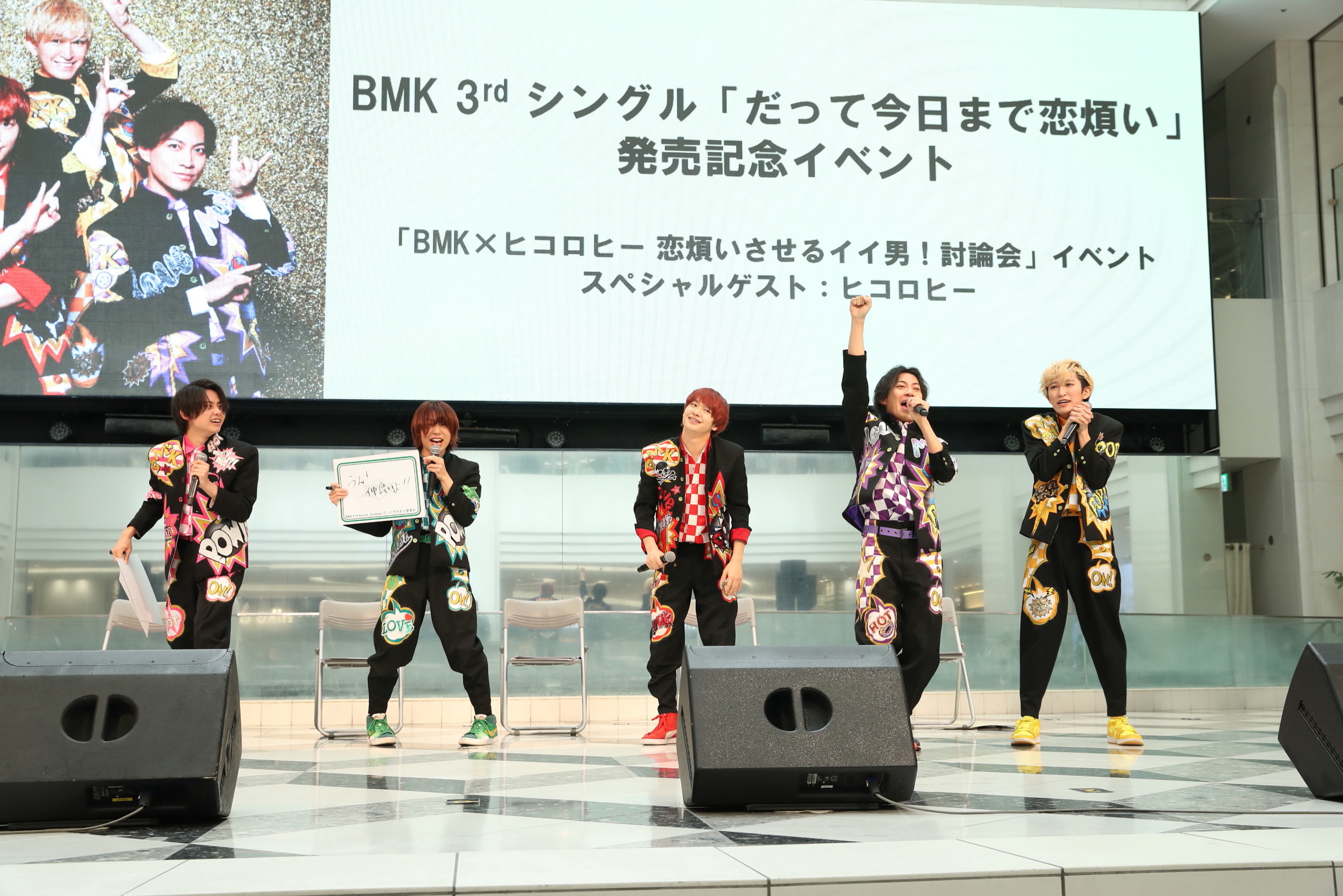 イベントには、スペシャルゲストとしてヒコロヒーも登壇。3rdシングル「だって今日まで恋煩い」に掛けて「BMK×ヒコロヒー 恋煩いさせるイイ男!討論会」と題したクロストークイベントで、ヒコロヒーをMCに迎え、恋愛シチュエーションのお題に対する回答をメンバーが発表。ヒコロヒーと共に「カッコイイ男とは何ぞや?」という事について徹底討論し、BMKがカッコイイ男を目指していく、という趣旨で行われたもの。様々な恋愛に関する問題やテーマへの回答でメンバーの『恋煩わせ度』をチェックしていきつつ、最終的にはMVPならぬ『BMKW(ベストモスト恋煩いニスト)』を決めていく。