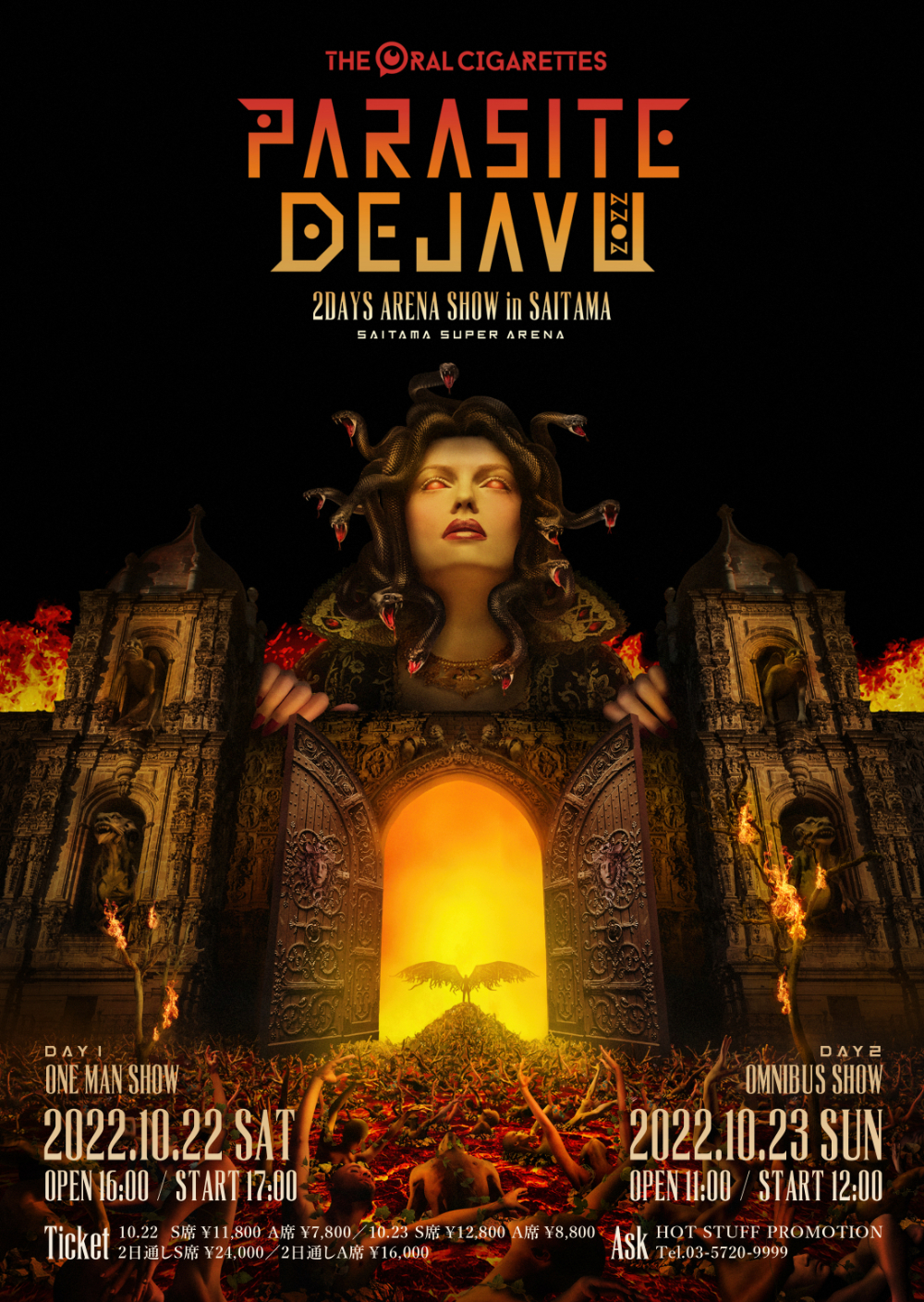 THE ORAL CIGARETTESが10月22日、23日の2日間に渡って、THE ORAL CIGARETTES『PARASITE DEJAVU 2022 〜2DAYS ARENA SHOW in SAITAMA〜』を開催することを発表した。