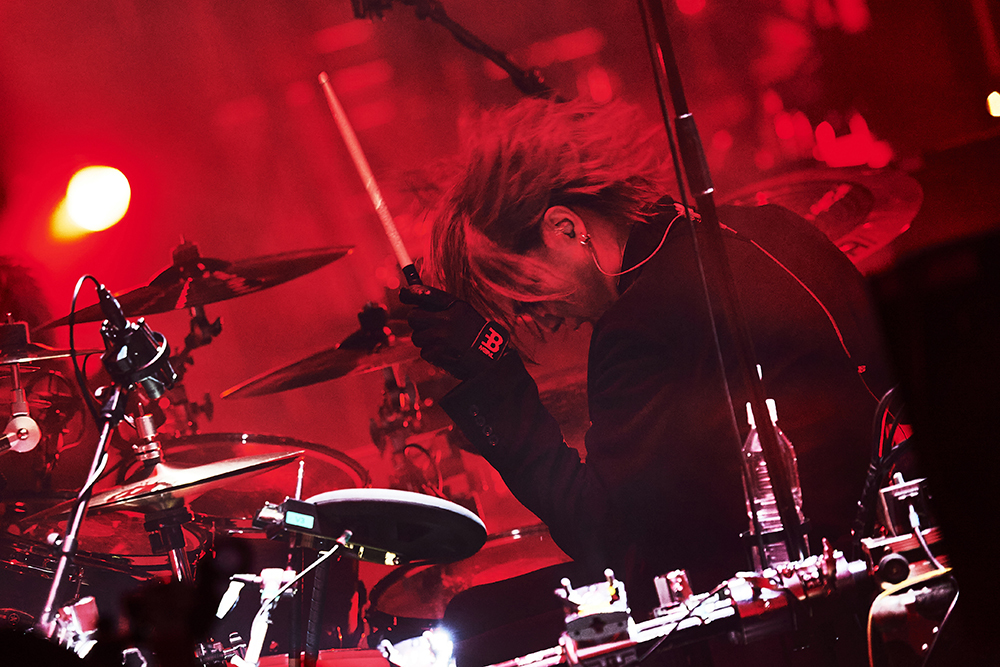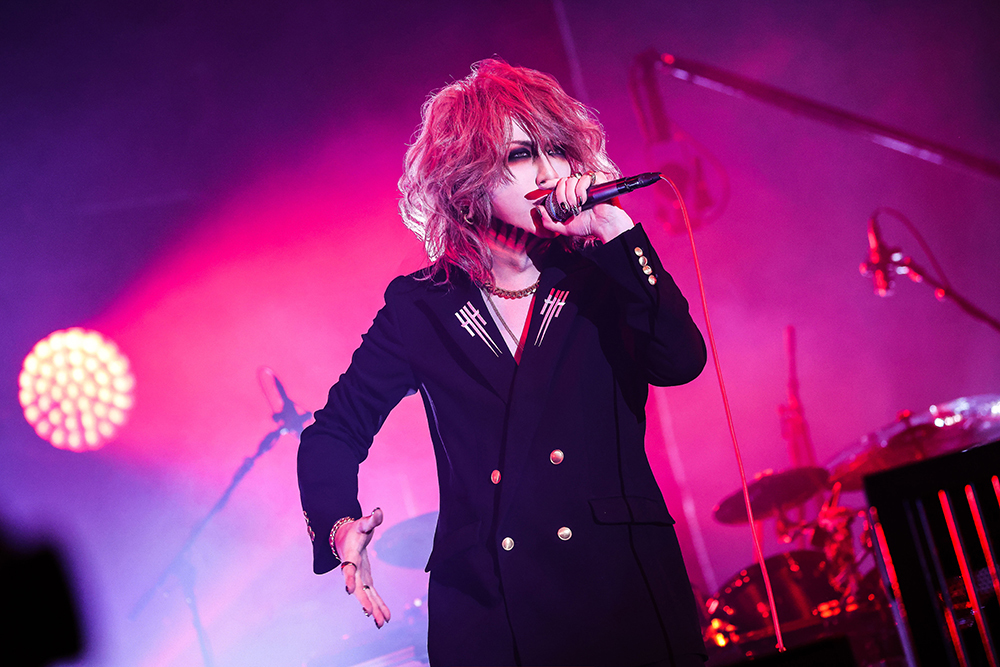 そうしてthe GazettEな王道メロ感を「SHIVER」で存分に味合わせ、RUKIがギターを抱えるなり思わず歓声が漏れた「Cassis」では《どうか僕たちを見つめていて》と歌い替えて、ジッと聴き入るオーディエンスの心を奪う。そこにあったのはファンに対する絶対的な信頼と、そして願いだ。