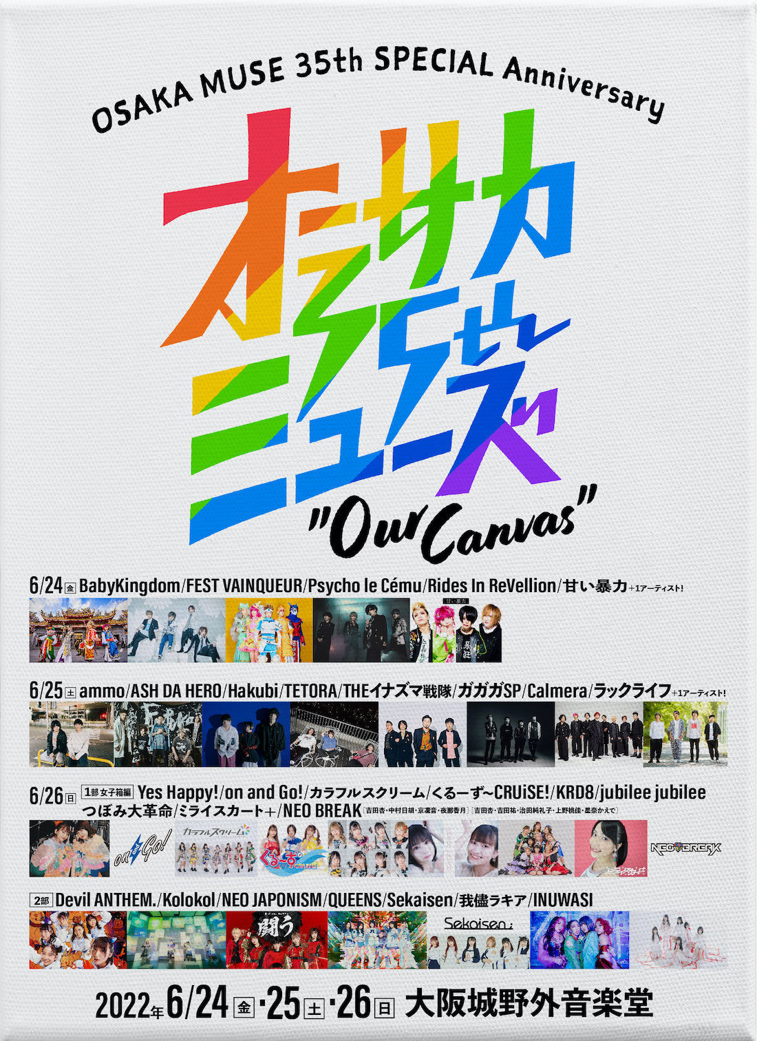 今年35周年を迎えるOSAKA MUSEが2022年6月24日(金)、6月25日(土)、6月26日(日)の3日間に渡り、大阪城野外音楽堂にて『OUR CANVAS』を開催する。