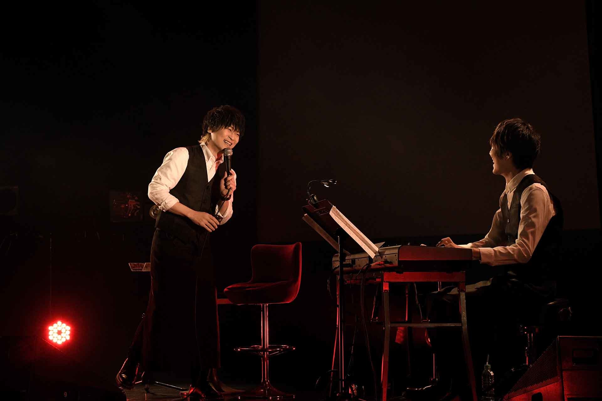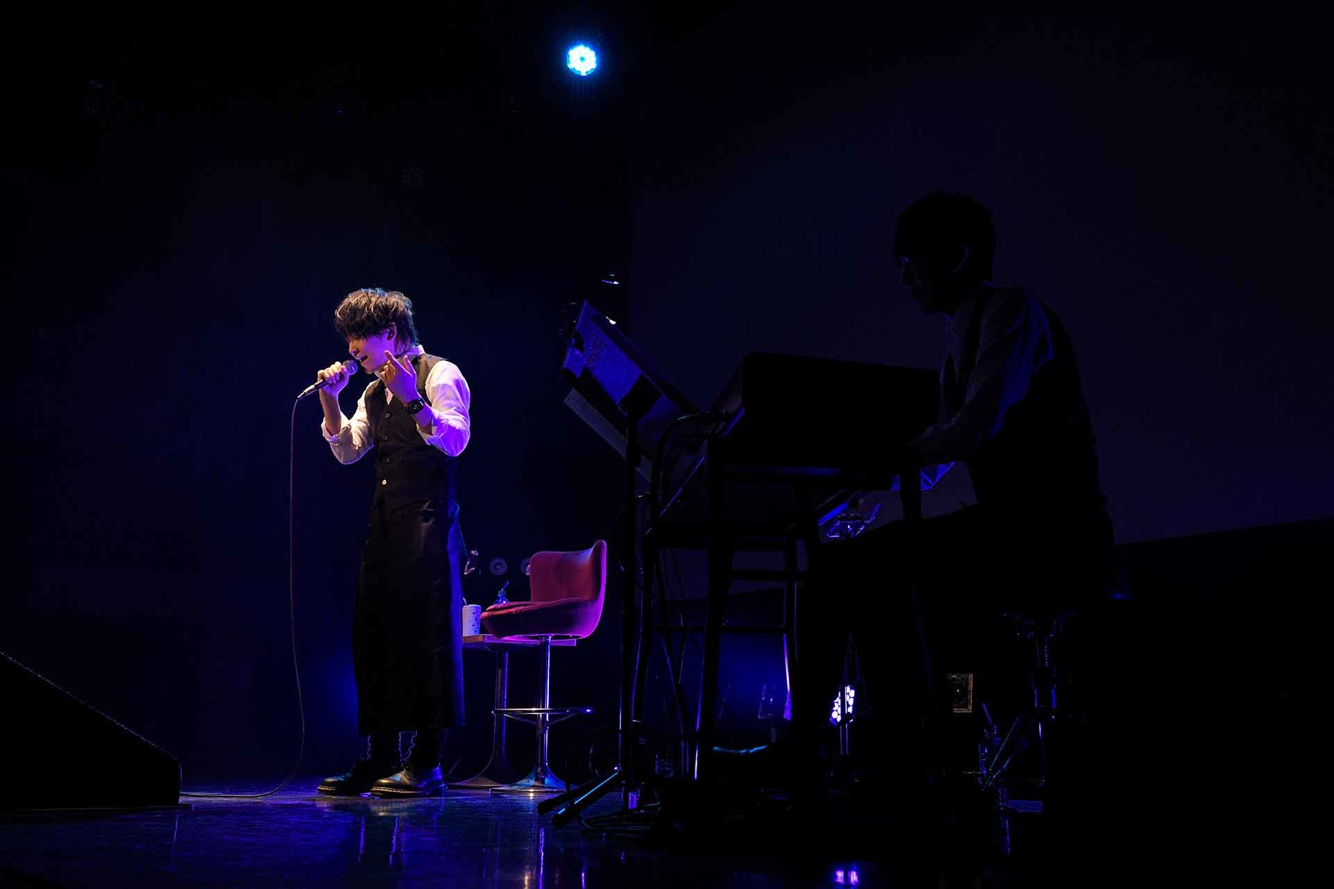 「それでは、ミュージックバリスタをお呼びします!」と言ってステージへと招いたのは、2019年開催のアコースティックイベント『カフェ・ド・ナナイロ』でもun:cを頼もしくサポートし、ミニアルバム『カフェ・ド・ナナイロ』のピアノ編曲も手がけた、PENGUIN RESEARCHのキーボーディスト・柴崎洋輔。同じくバリスタな出で立ちの柴崎に、「めっちゃ似合いますね!」とun:cが笑顔を見せる。