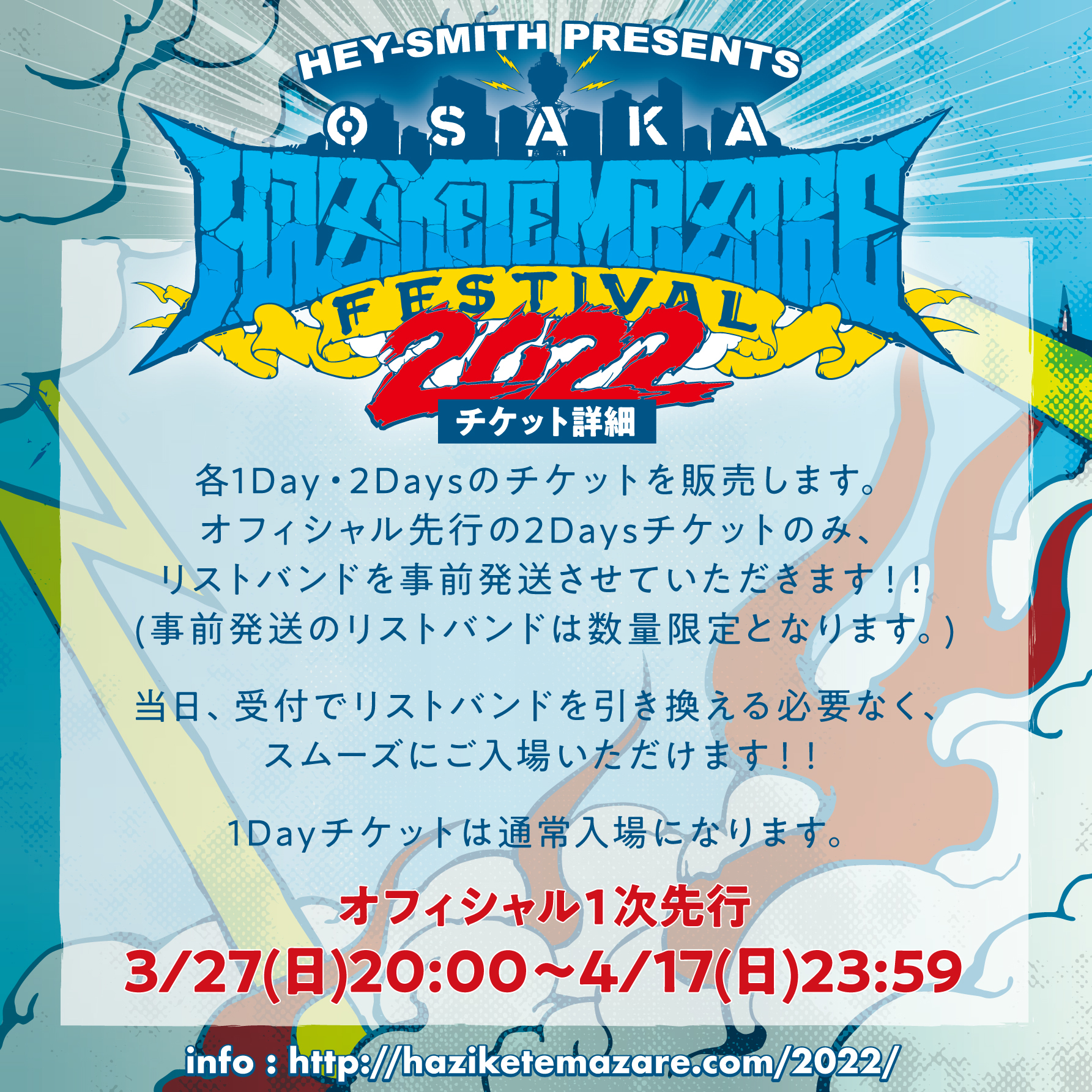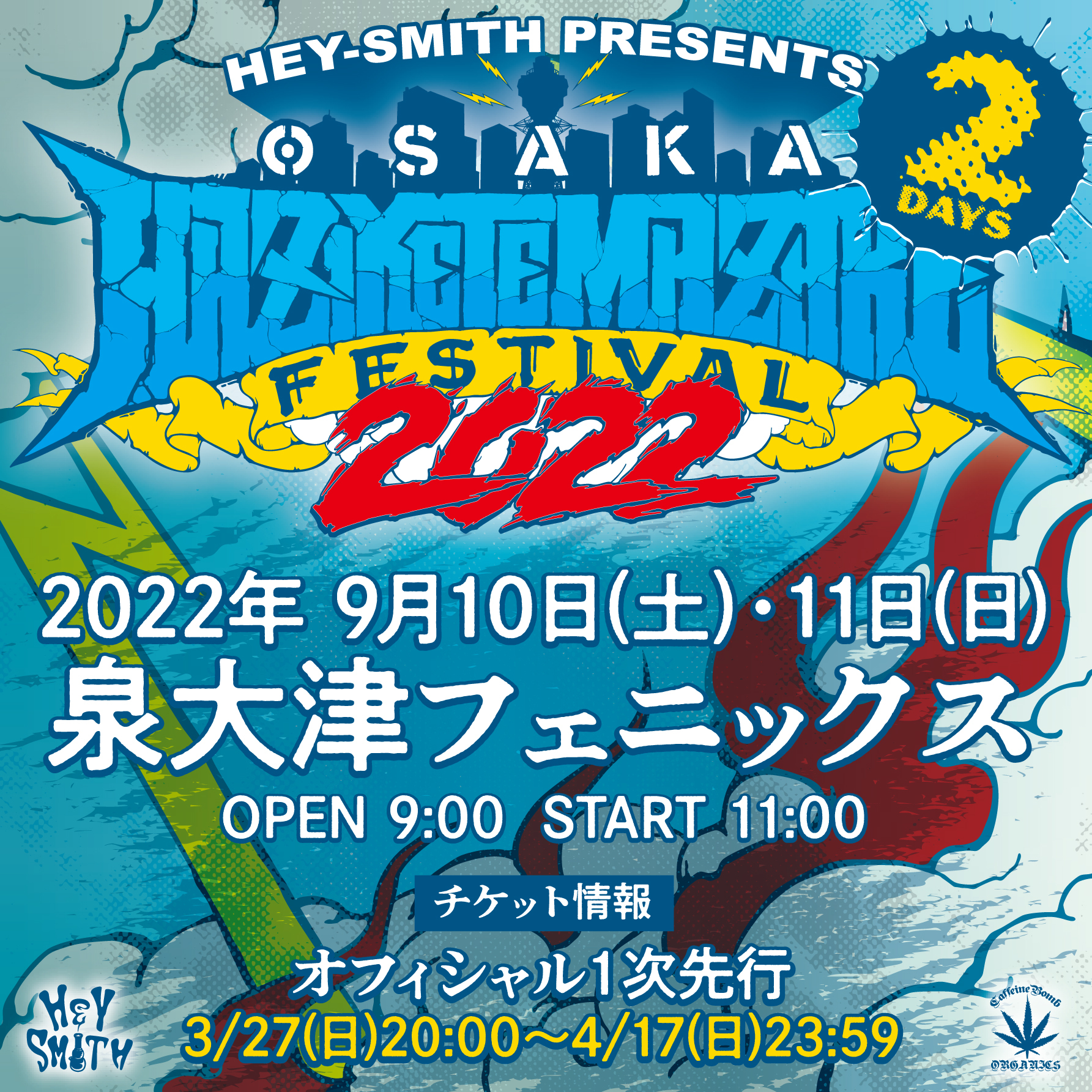 HEY-SMITH主催による音楽フェス『OSAKA HAZIKETEMAZARE FESTIVAL』が、2022年9月10日(土)、11日(日)に大阪・泉大津フェニックスで開催されることが決定した。