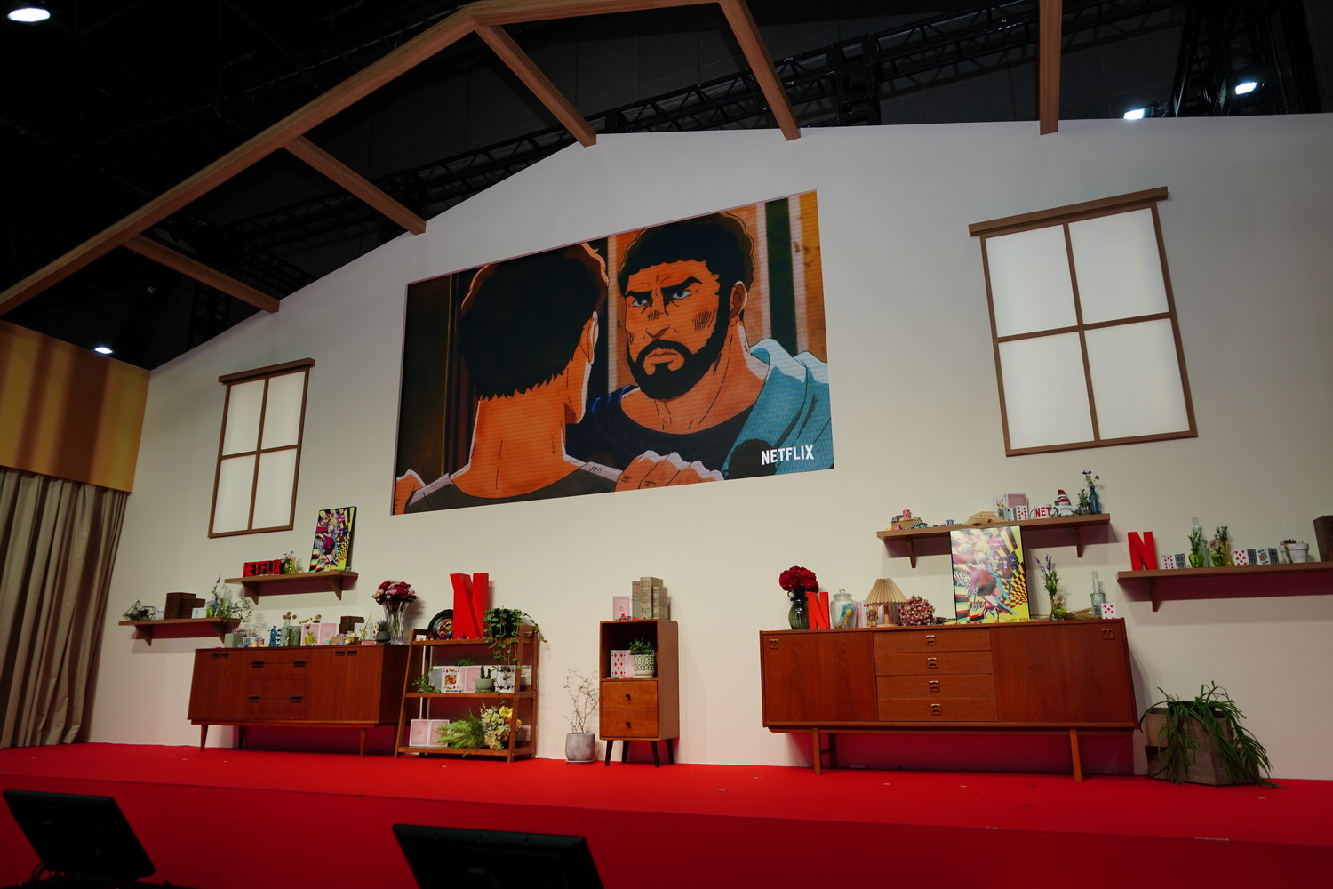 配信を楽しむ自宅を模したようなNetflixブース内には、現在同サービスで視聴可能なアニメタイトルが数多く展示され配信作品の声優陣を招いてのトークステージも行われた。