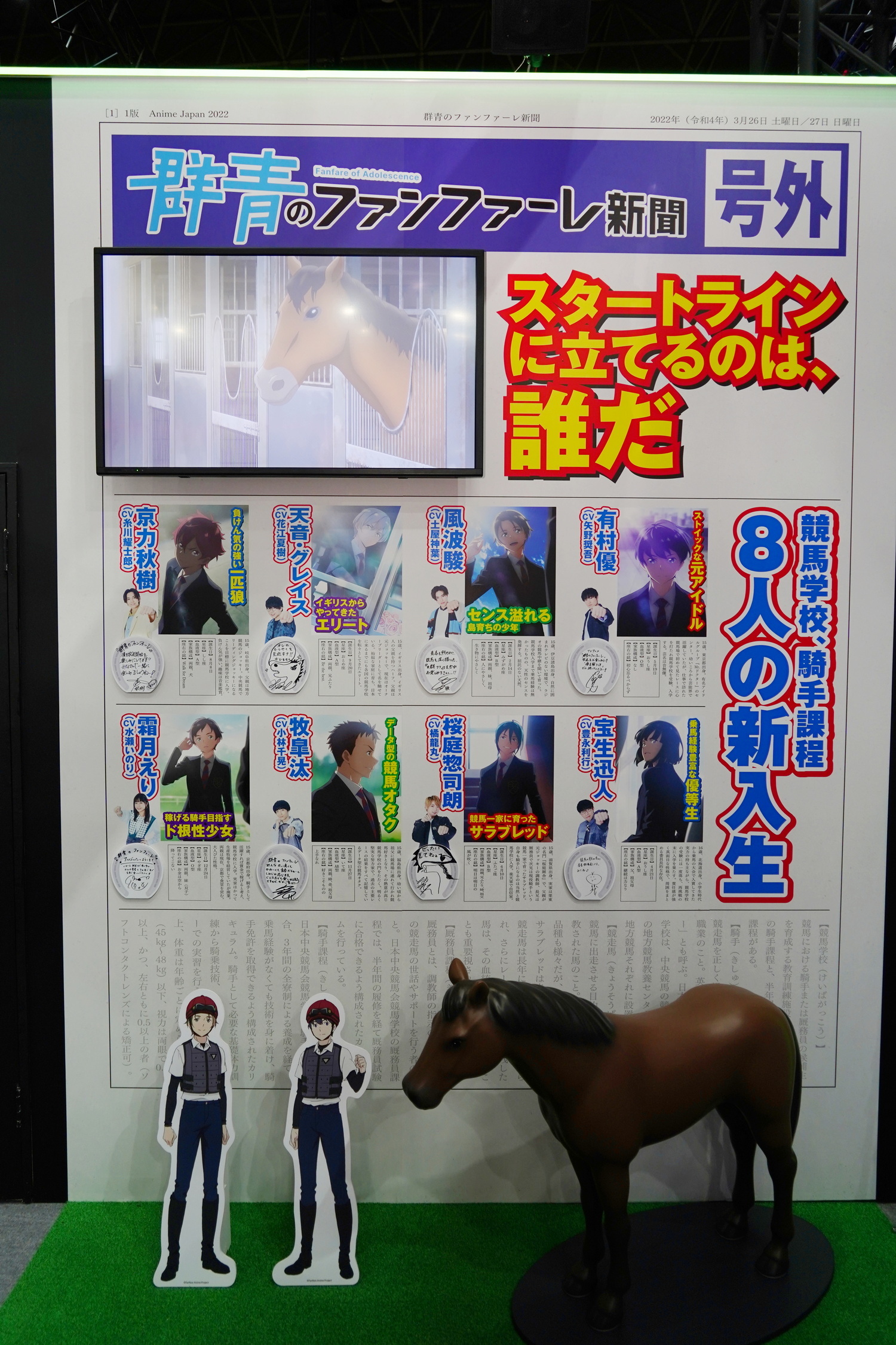 競馬学校を舞台とした『群青のファンファーレ』は競馬新聞風の展示でキャラクターなどがお披露目された。