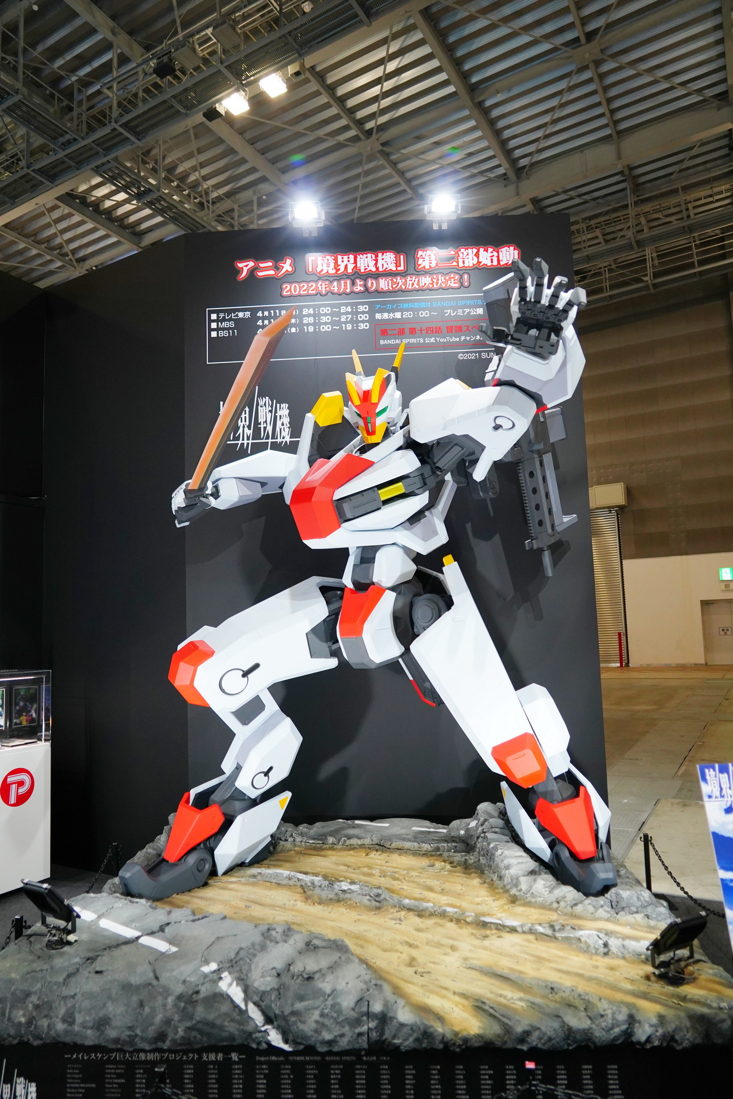 独立して展示された『境界戦記』ブースでは、第二部の主役メカ・ケンブ斬の大型モデルが展示された。