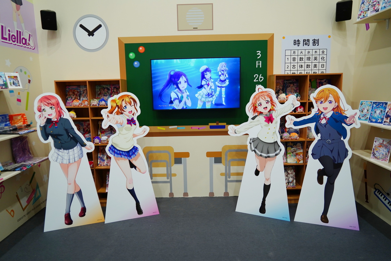 「ラブライブ!」シリーズのコーナーでは各スクールアイドルのリーダー達が揃い踏み。7月に第2期がスタートする『ラブライブ!スーパースター!!』を中心に歴代シリーズの解説などの展示も。