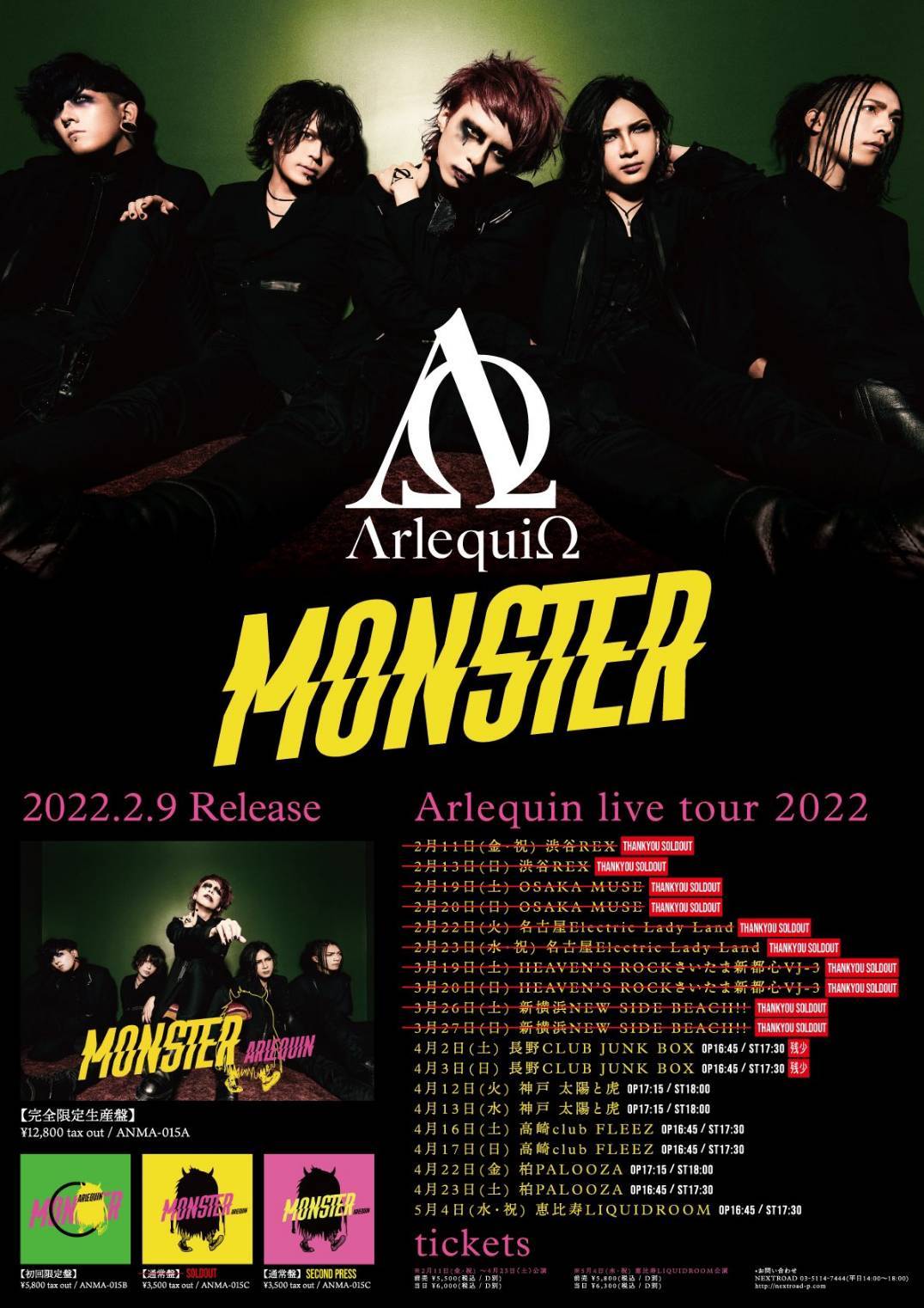 アルルカンが現在行っているツアー『MONSTER』のファイナル公演となる5月4日(水/祝)恵比寿リキッドルームのチケット先行受付が始まった。