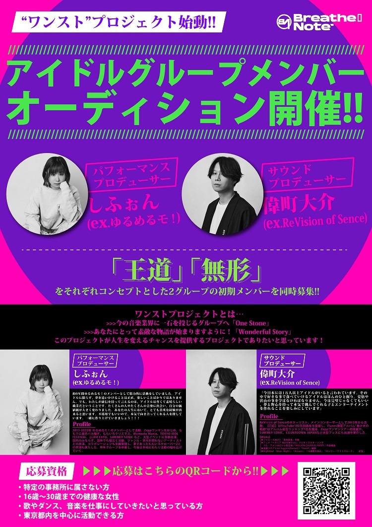 新気鋭のマルチクリエイティブチーム『Breathe Note』が「”ワンスト”プロジェクト」と称したアイドルグループオーディションを開催。