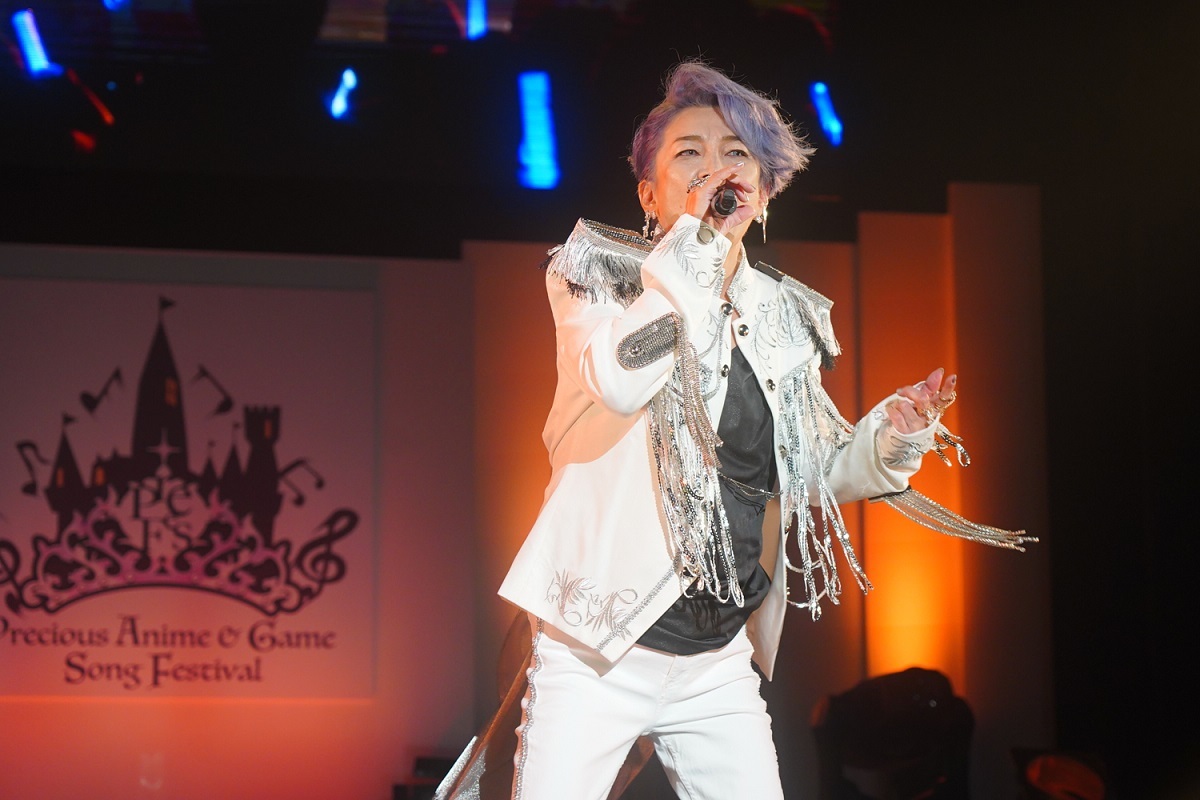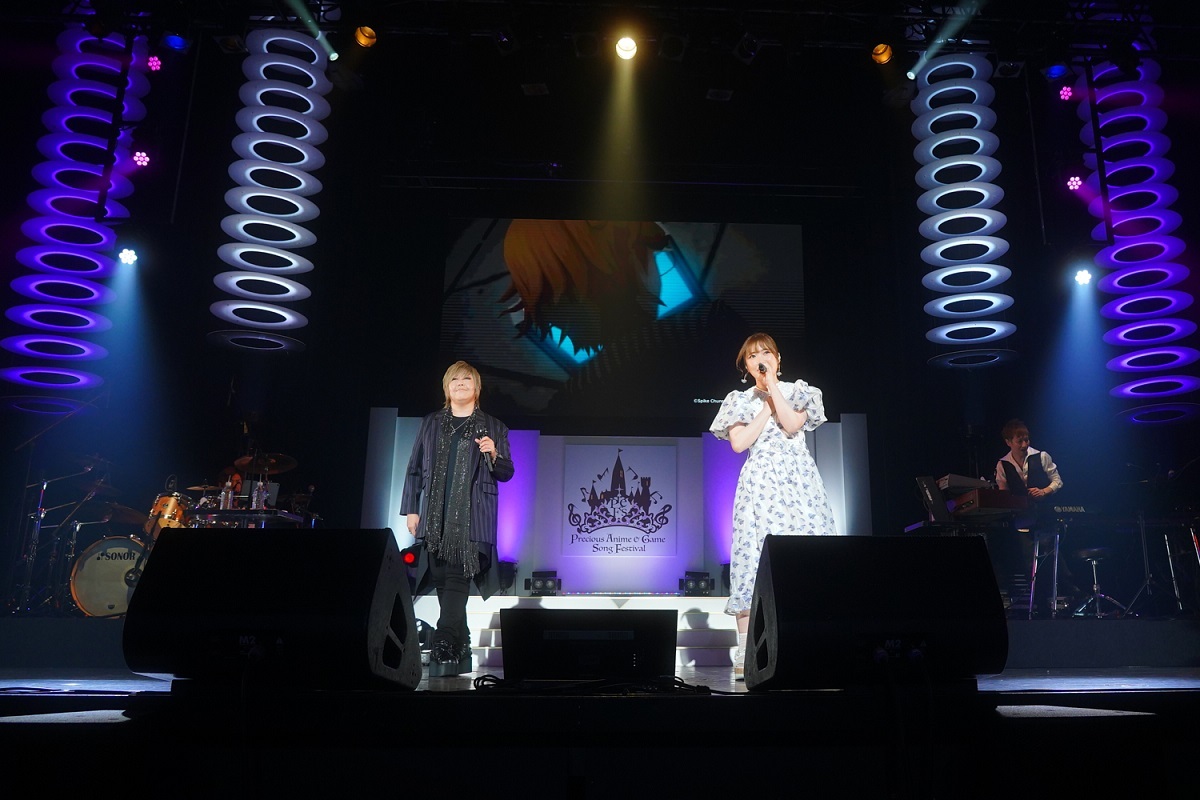 最後は「永遠のアセリア」(ゲーム『永遠のアセリア -The Spirit of Eternity Sword-』主題歌)を披露し、拳を掲げながら歌えば、観客もそれに応じて拳を上げる。演奏が終わると、MCの内田は「すごくスペシャルなステージ」と言い、緒方も「(魂が)震える声なんですよね」と感想を述べた。