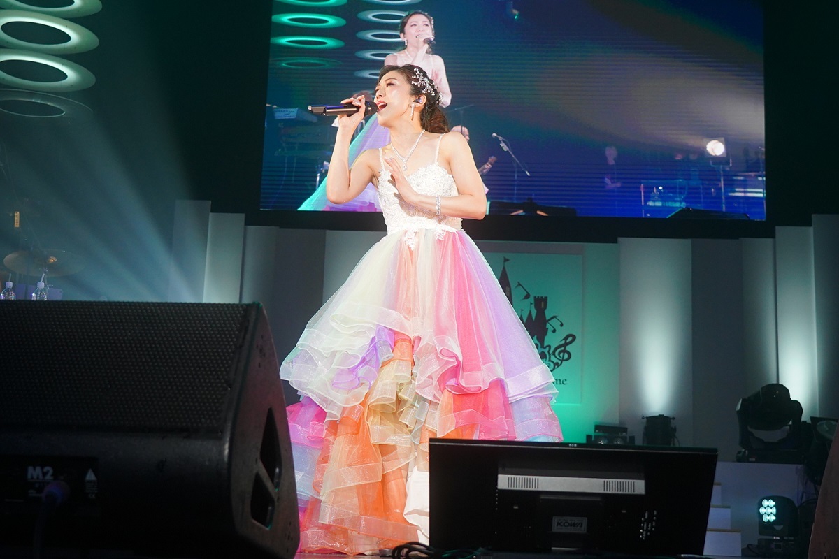 2曲目には「自己肯定感がアップするエールになるような曲」として、新曲「君のまんまが いいんだよ」(アニメ映画『しまじろうと キラキラおうこくの おうじさま』主題歌)を披露。温かく包み込んでいくような声で、慈愛に溢れるバラードを歌い上げる。また、3曲目にはロックな曲調に戻り、「ドリドリ」(TVアニメ『ポケットモンスターXY』ED)を披露。元気いっぱいな歌の間奏には「スーパードリドリタイム!」と叫び、観客と一緒に大きく腕を回していった。最後には「せーのでジャンプするよ!せーの!」と、観客全員で飛び跳ね、大盛り上がりのステージを締めくくる。