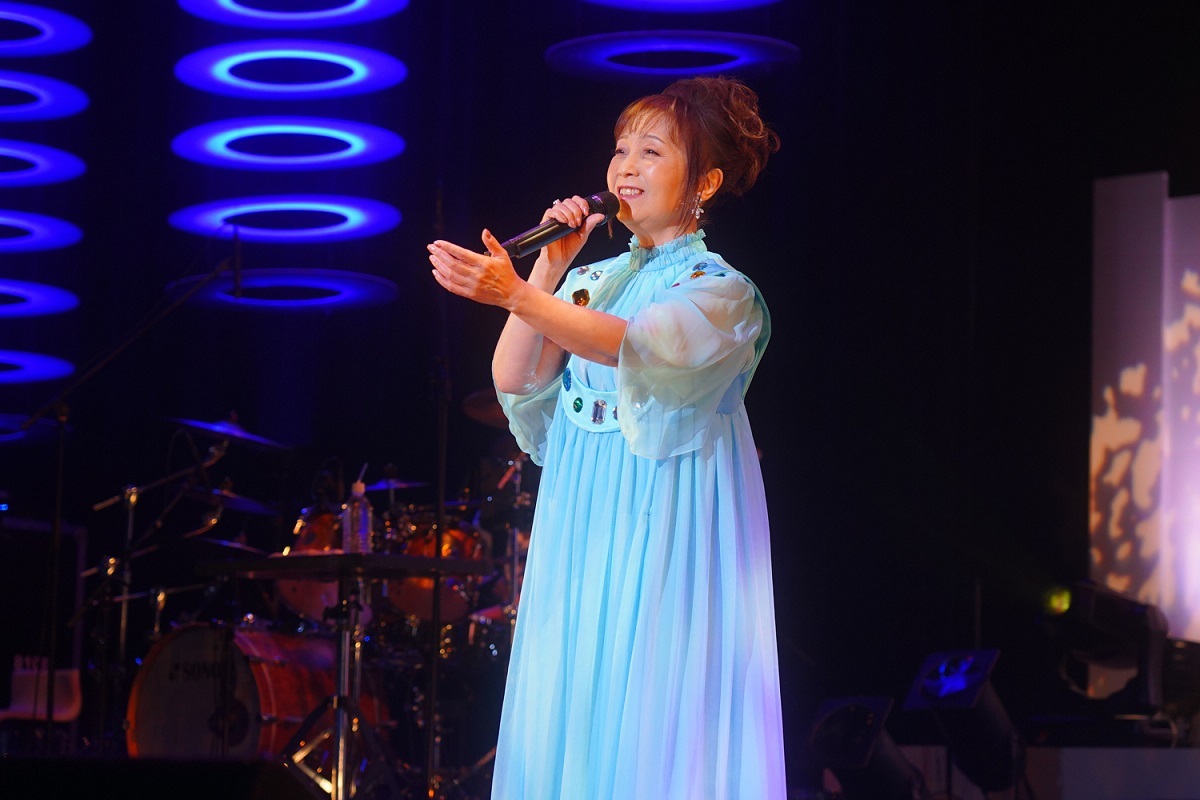 続いては「堀江美都子ヒットメドレー」として、「キャンディ キャンディ」(TVアニメ『キャンディ キャンディ』OP)、「ひみつのアッコちゃん」(TVアニメ『ひみつのアッコちゃん』OP)、「花の子ルンルン」(TVアニメ『花の子ルンルン』OP)、「サザエさんのうた」(TVアニメ『サザエさん』(火曜日)OP)の4曲を披露する。中年世代は子供のころから馴染みのある楽曲たち。当時は当たり前のように聴いていた楽曲でも、この2022年に生の歌声として聴けるとなると、何やら不思議な感動で涙があふれてくるようだ。