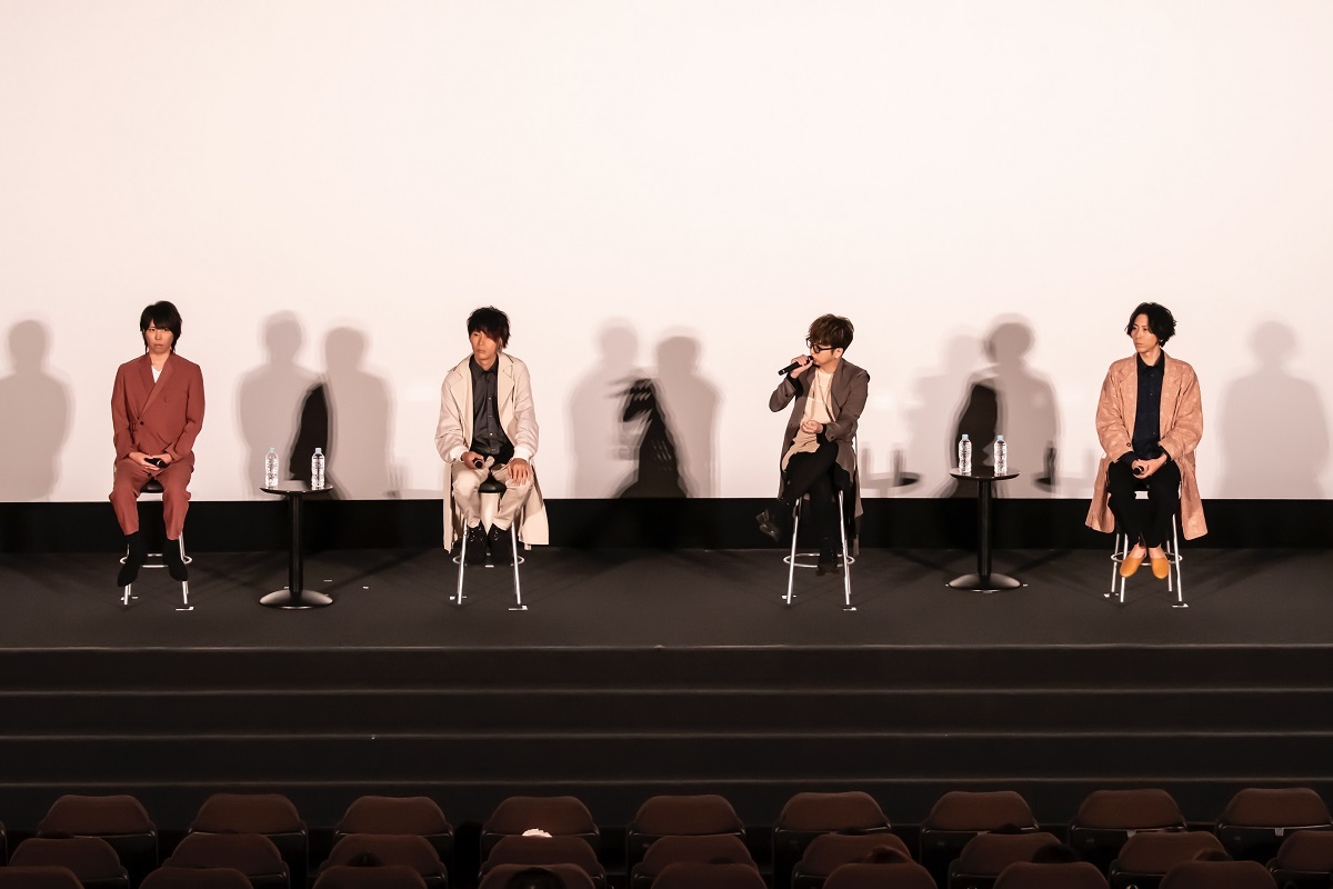 試聴会の余韻さめやらぬ間に、司会の星野卓也がメンバーを呼び込み、トークセッションが始まった。全国5か所のツアーを振り返り、マオは「アルバムを聴いたあとの皆さんの顔を見ると、ジーンと来ている感じがあって、かわいらしいなと思いました」、ゆうやは「すごいですね。もうライブでした。あと、椅子が気持ちいいです」、明希は「臨場感ある音で聴いてもらって、映画館ならではの良さだなと思います」、そしてShinjiは「初めてなので緊張しますね」と言いながら、誰よりも饒舌にしゃべり、星野卓也に突っ込まれている。4人ともリラックスして、楽しそうだ。
