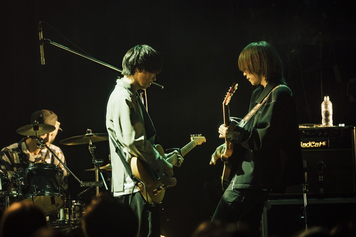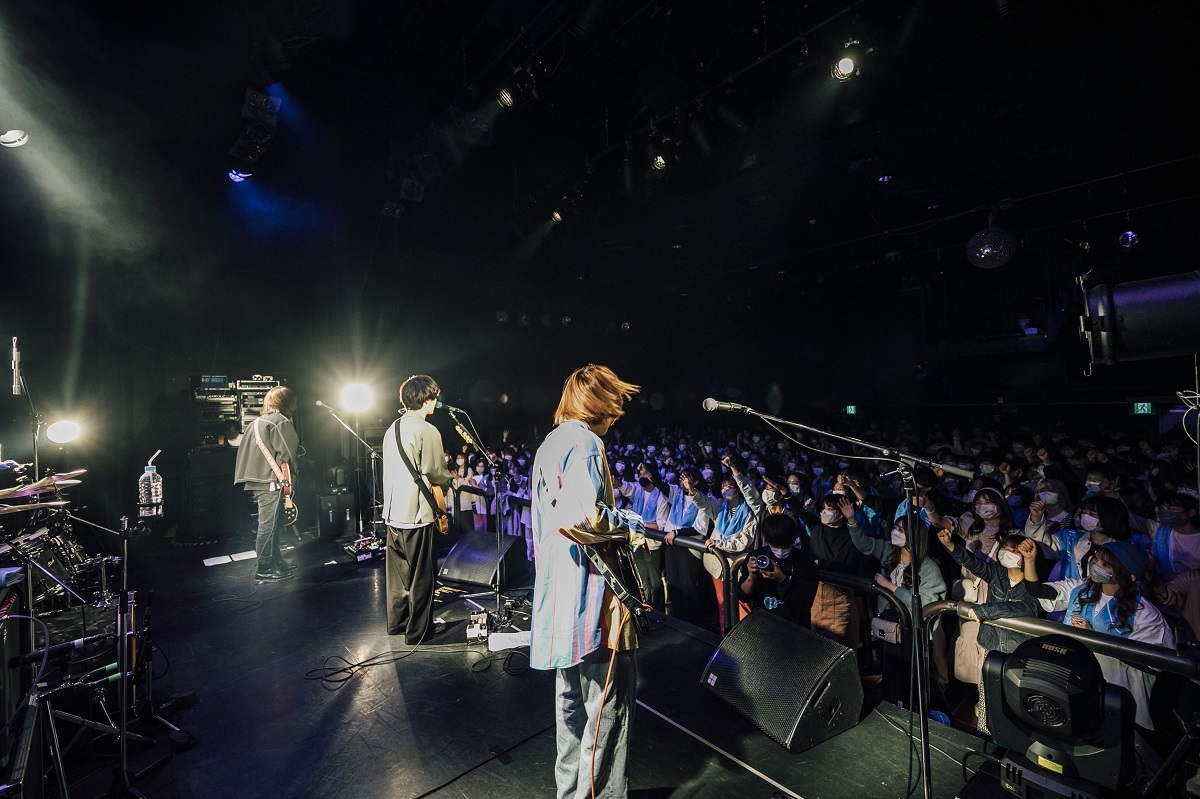 「オードトワレ」から「雫」へ、ミュージックビデオでよく知られる人気曲が登場するたびに、歓声の代わりに大きな身振り手振りで“待ってました!”の思いを伝えるオーディエンス。《友達じゃいられない》と歌う「オードトワレ」や、《薬指に嵌めた指輪》というフレーズが意味深な「雫」など、様々な恋愛シチュエーションを色鮮やかに歌う、うきょうの歌詞はとても映像的だ。エモーショナルなミドルロックバラード「遠吠え」では、おさみぃが最高にセンチメンタルなギターソロを決め、クライマックスではうきょうが叫ぶように歌う。ライブならではの感情の昂ぶりは、予想以上に激しく熱い。